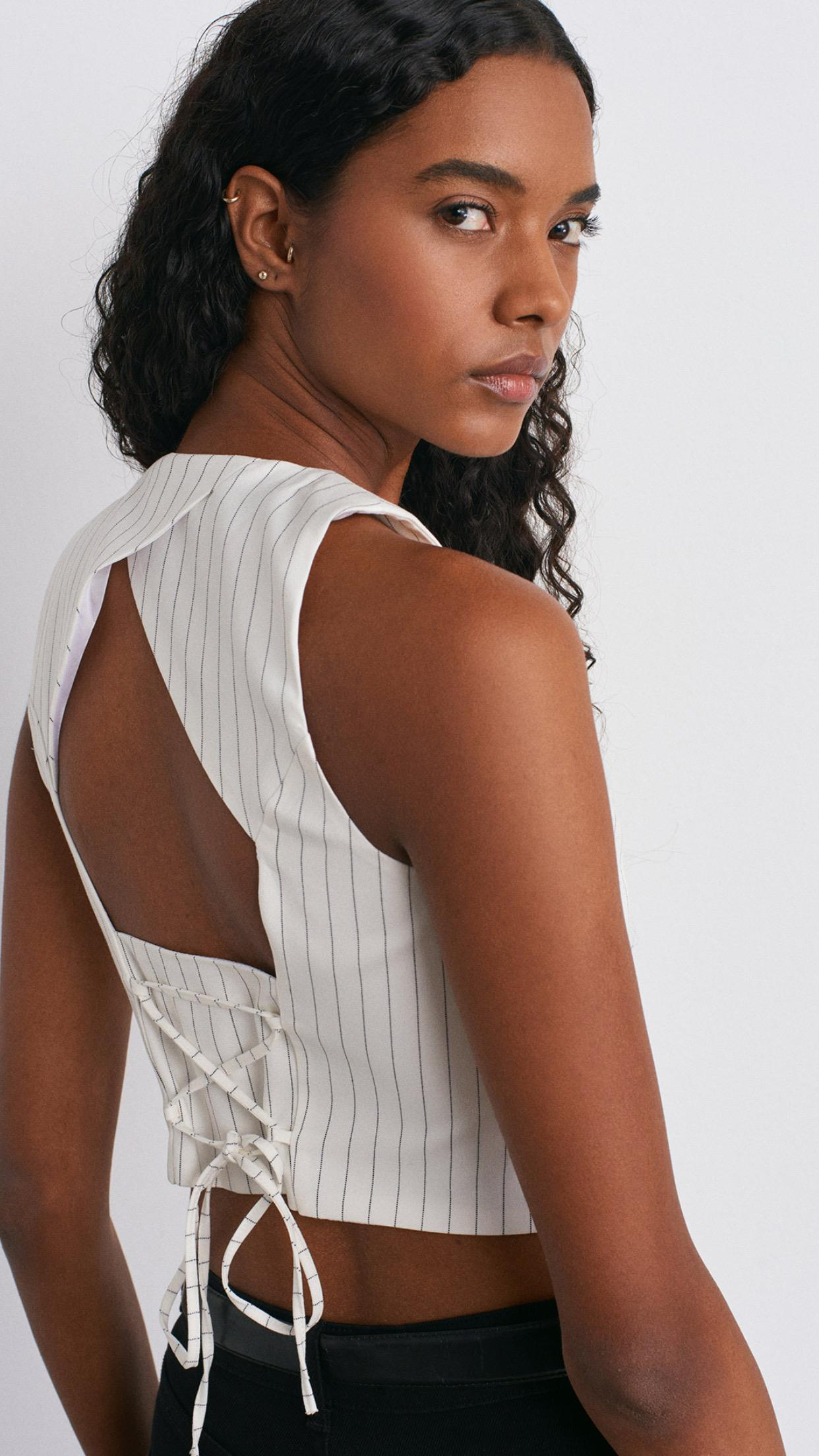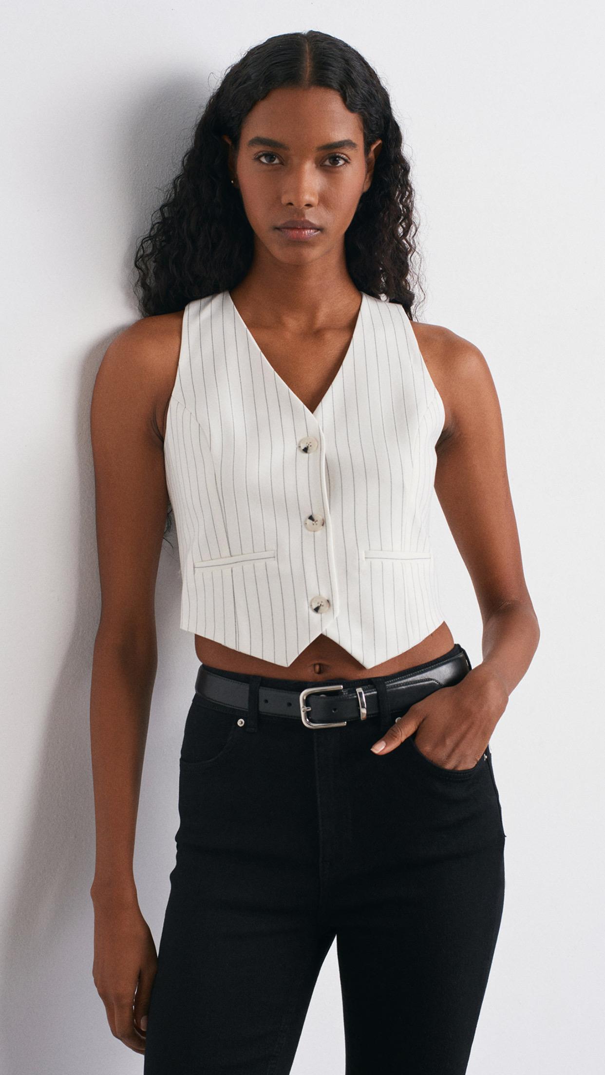 Arkası Dekolteli Yelek-Beyaz (60596BEYAZ)