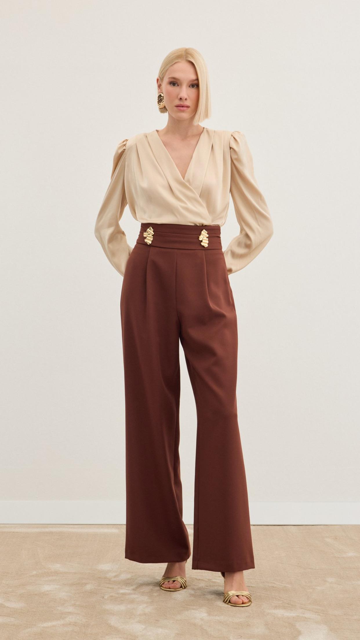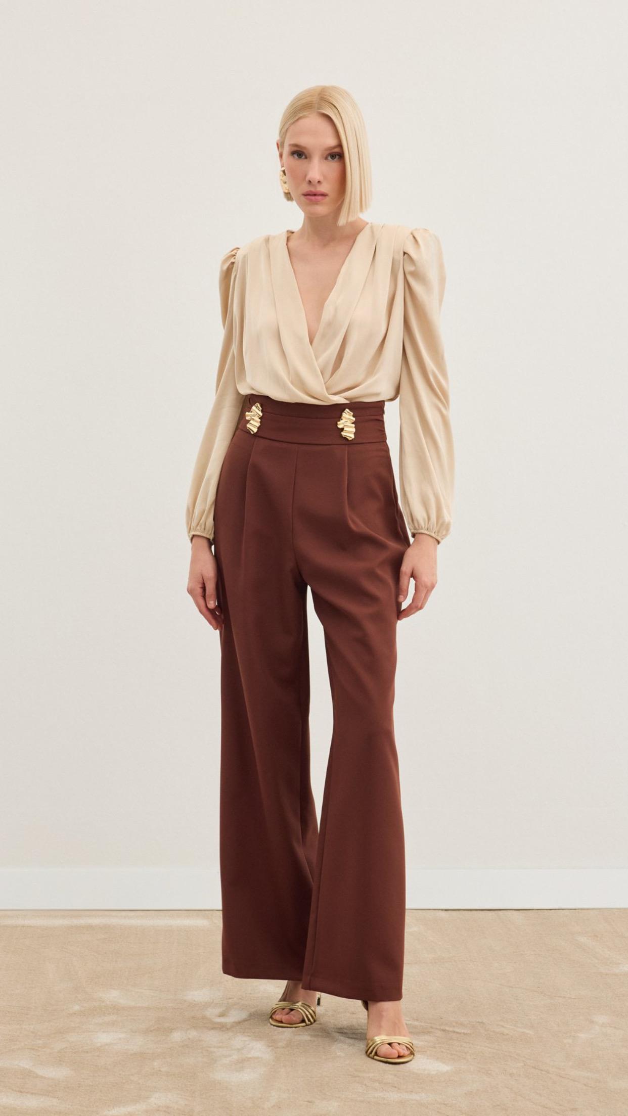 Bel Aksesuarlı Pantolon - Kahve (5540)