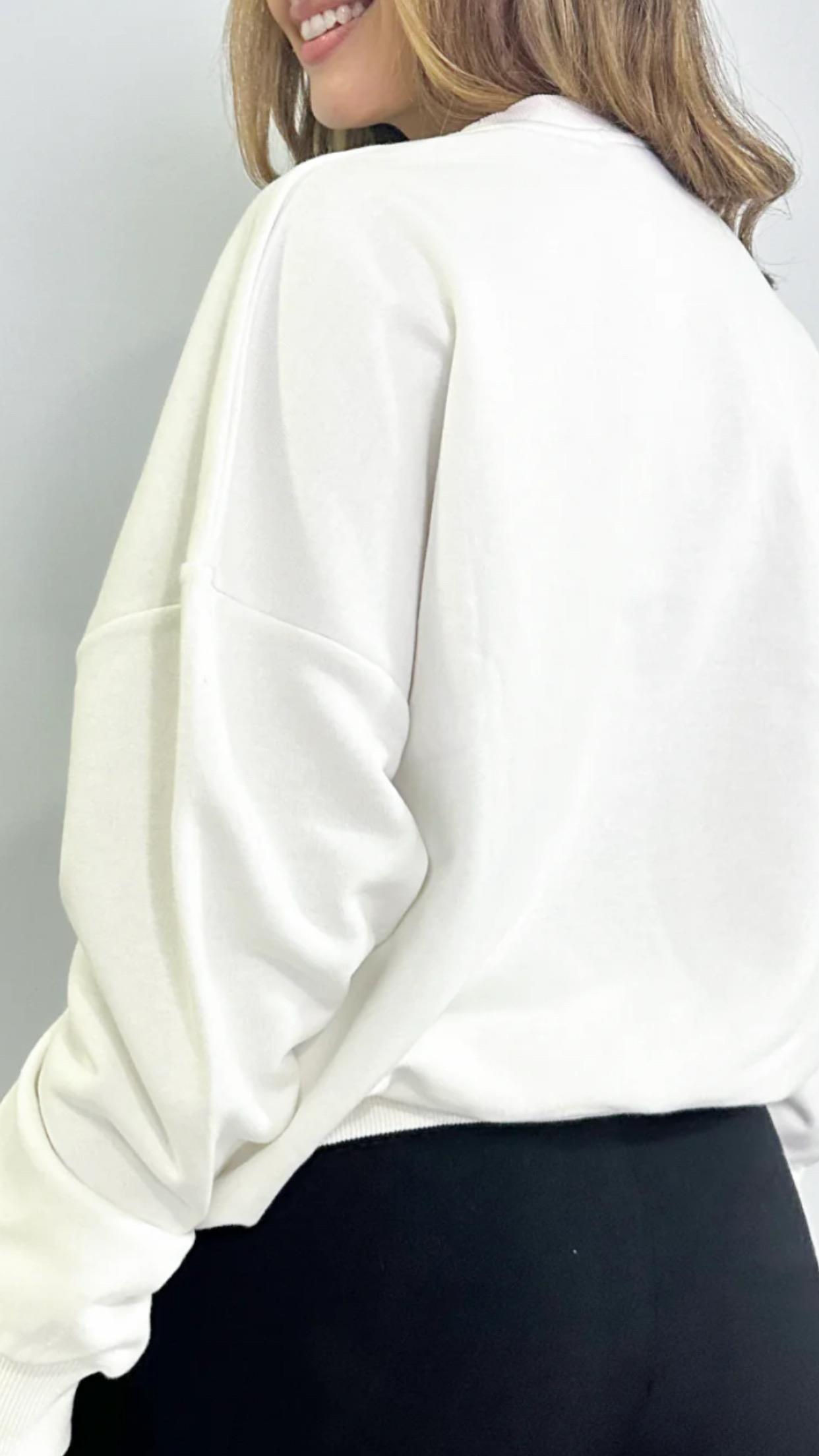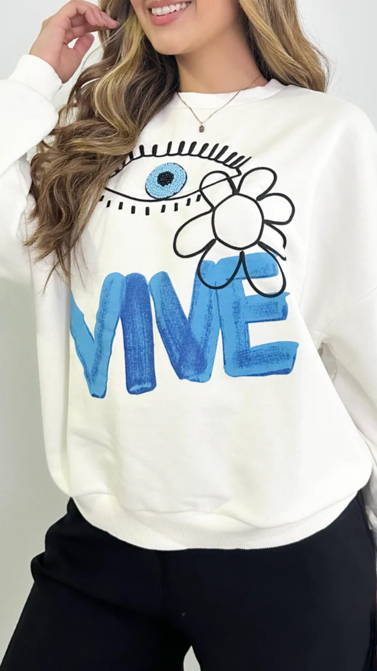 Beyaz Renk Mavi Göz Detay Sweat (Vzf-Q32)