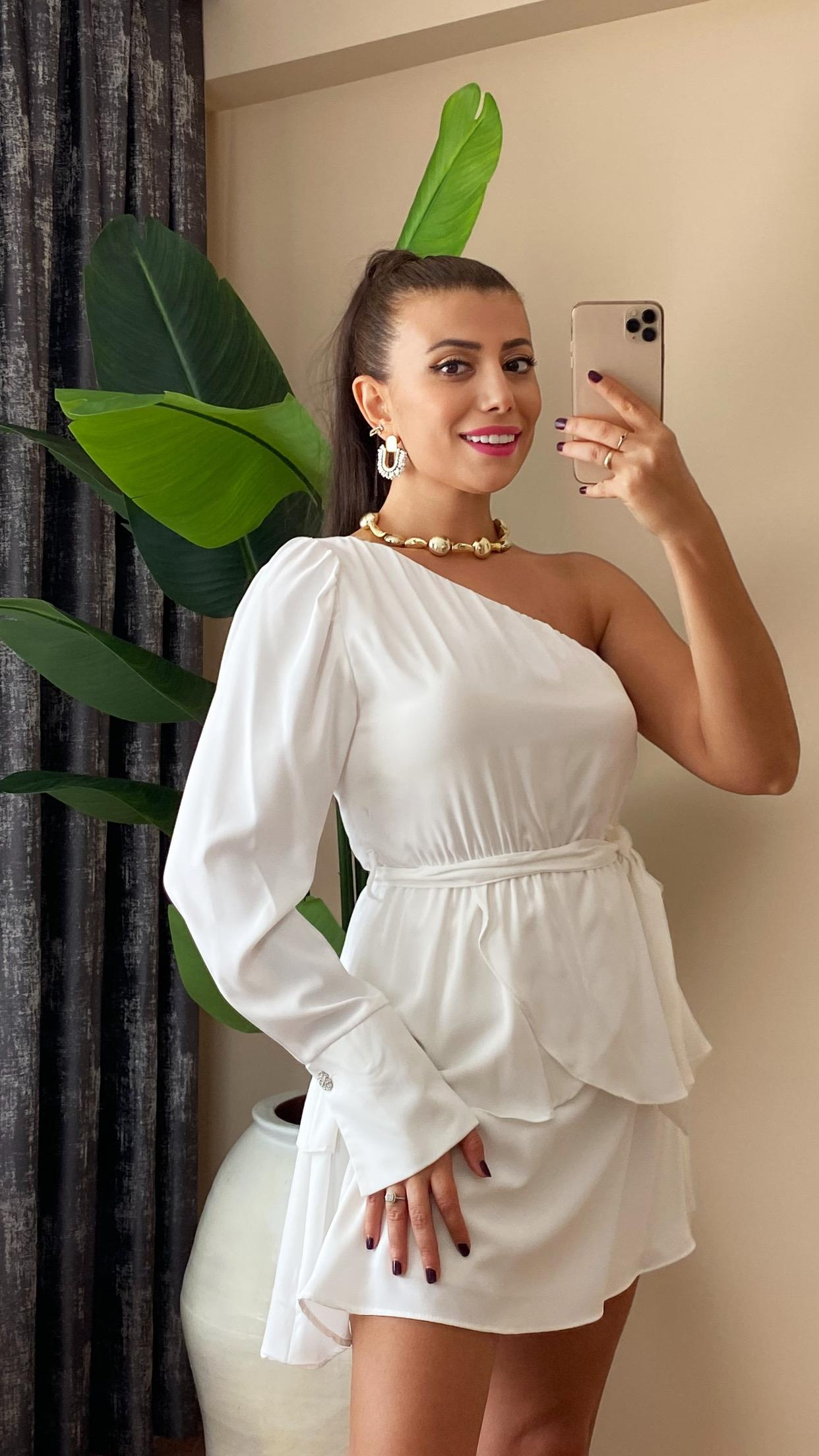 Beyaz Tek Kol Saten Elbise (Mvr-Q4)