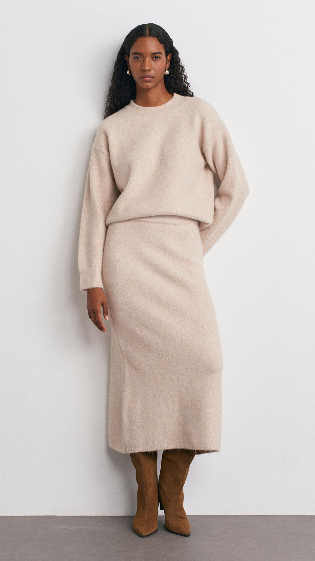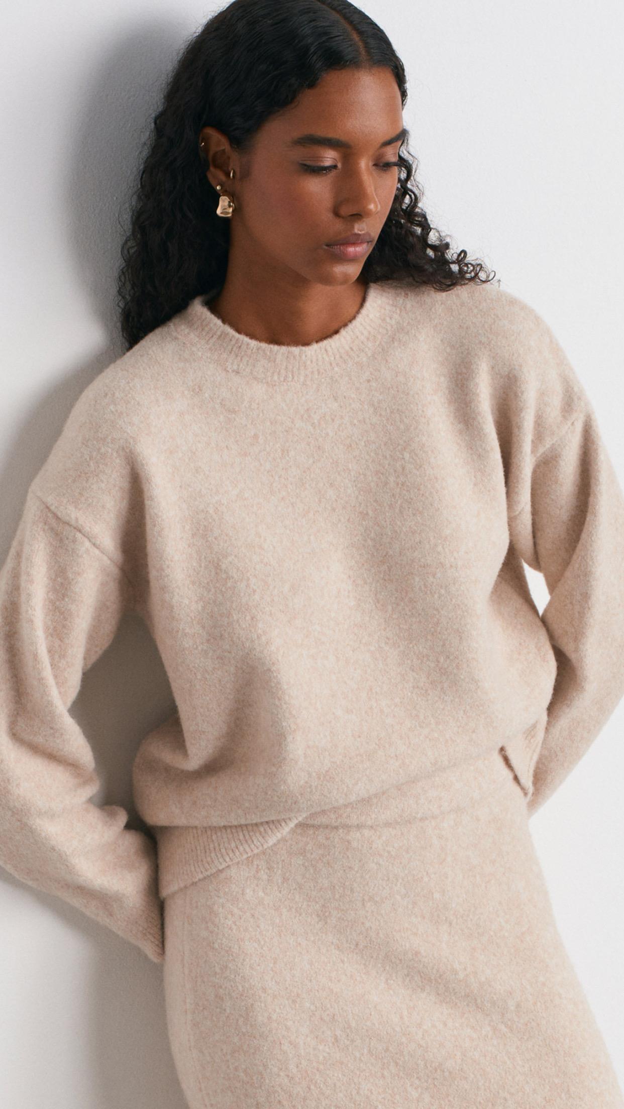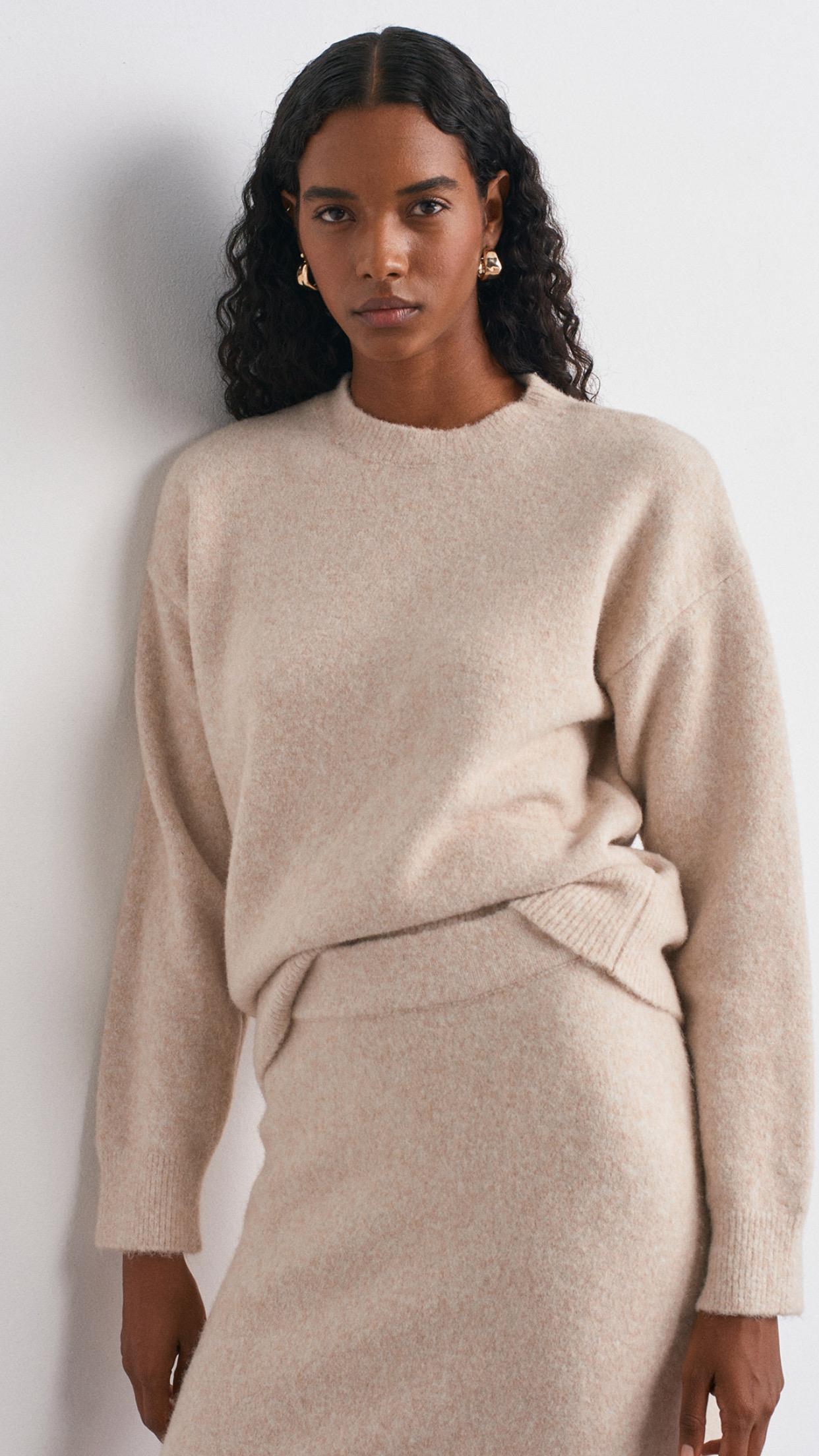 Bisiklet Yaka Yumuşak Dokulu Triko Kazak-A.Bej Mel. (10640B)