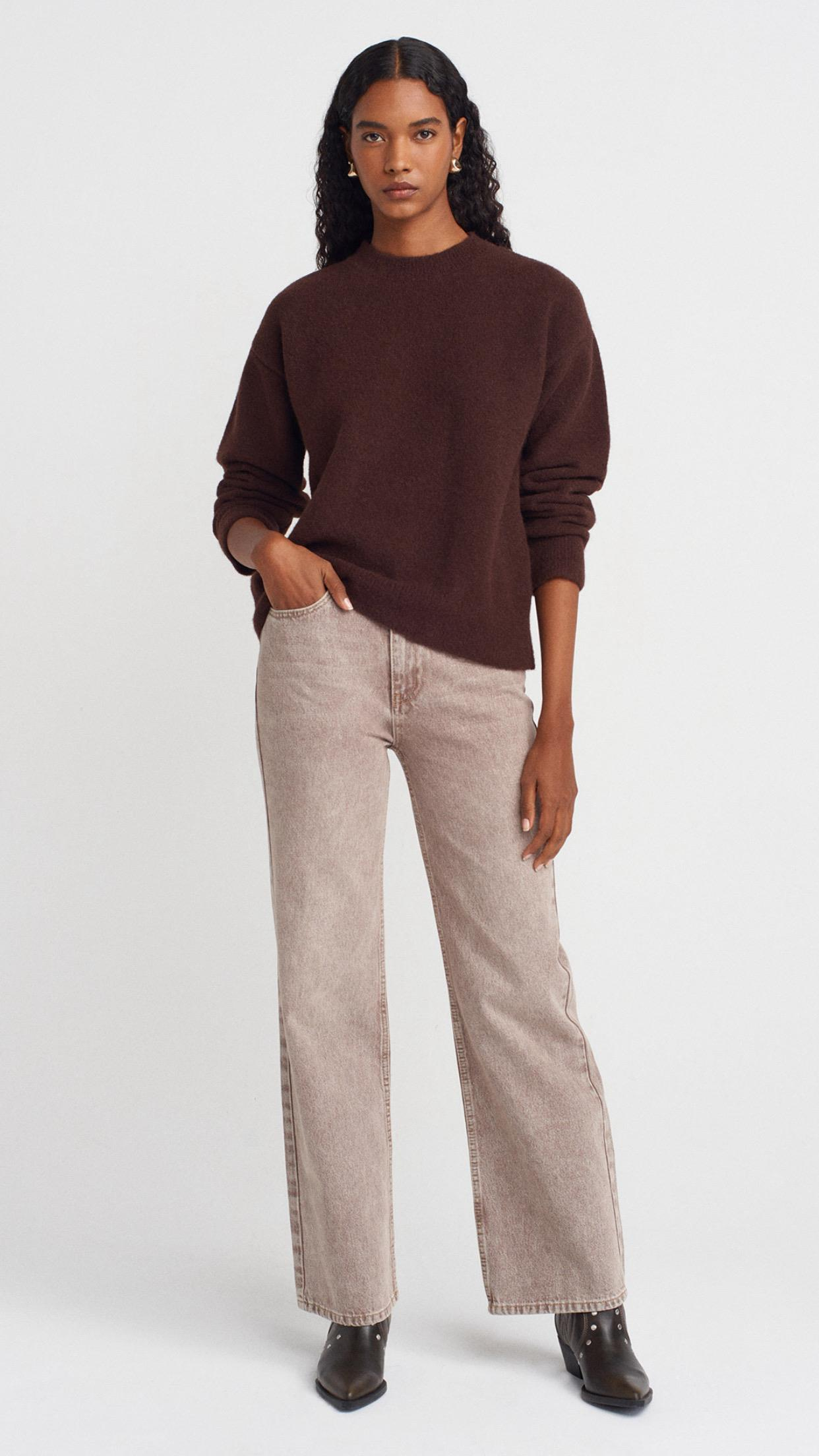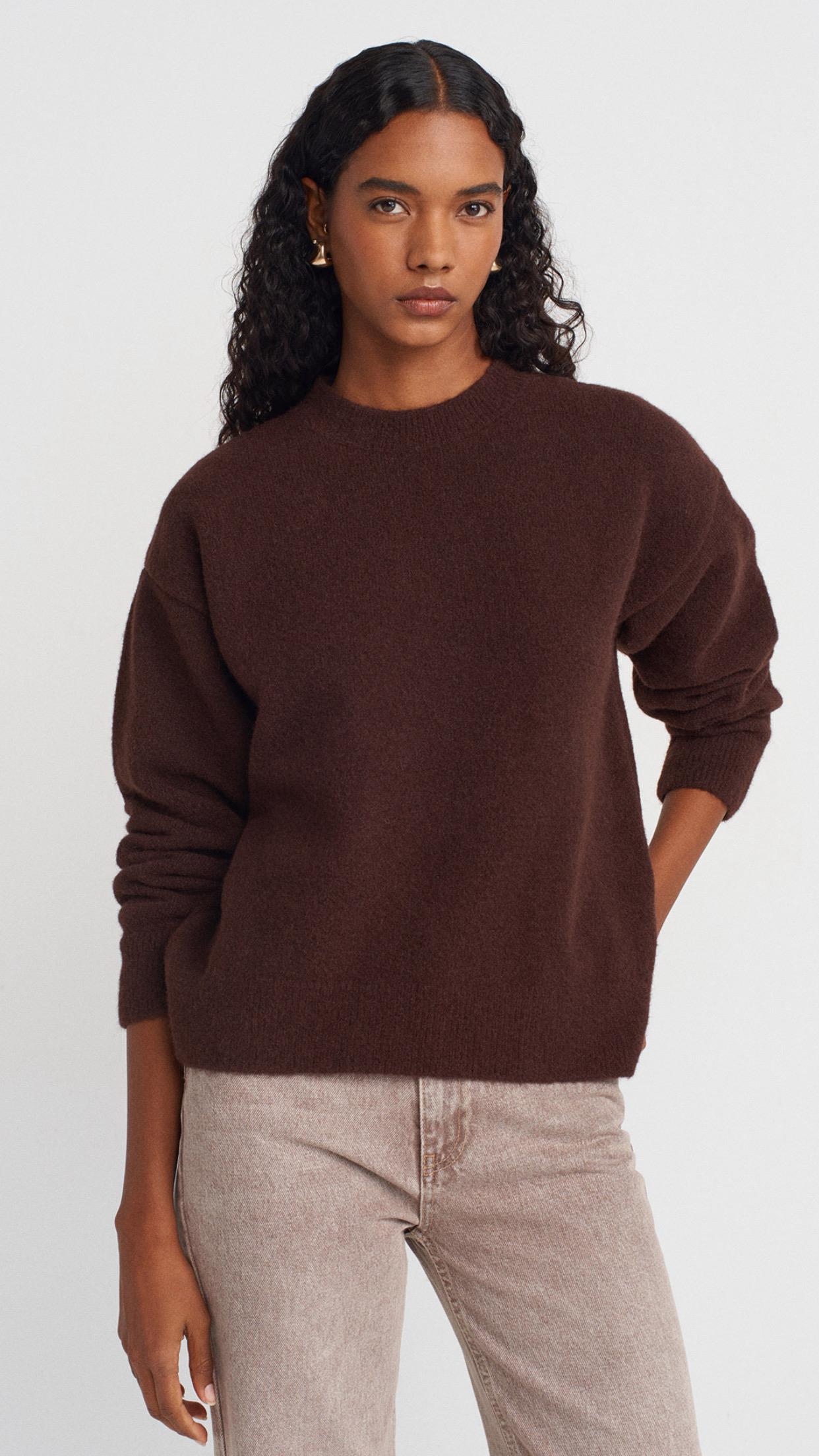 Bisiklet Yaka Yumuşak Dokulu Triko Kazak-Kahve (10640K)