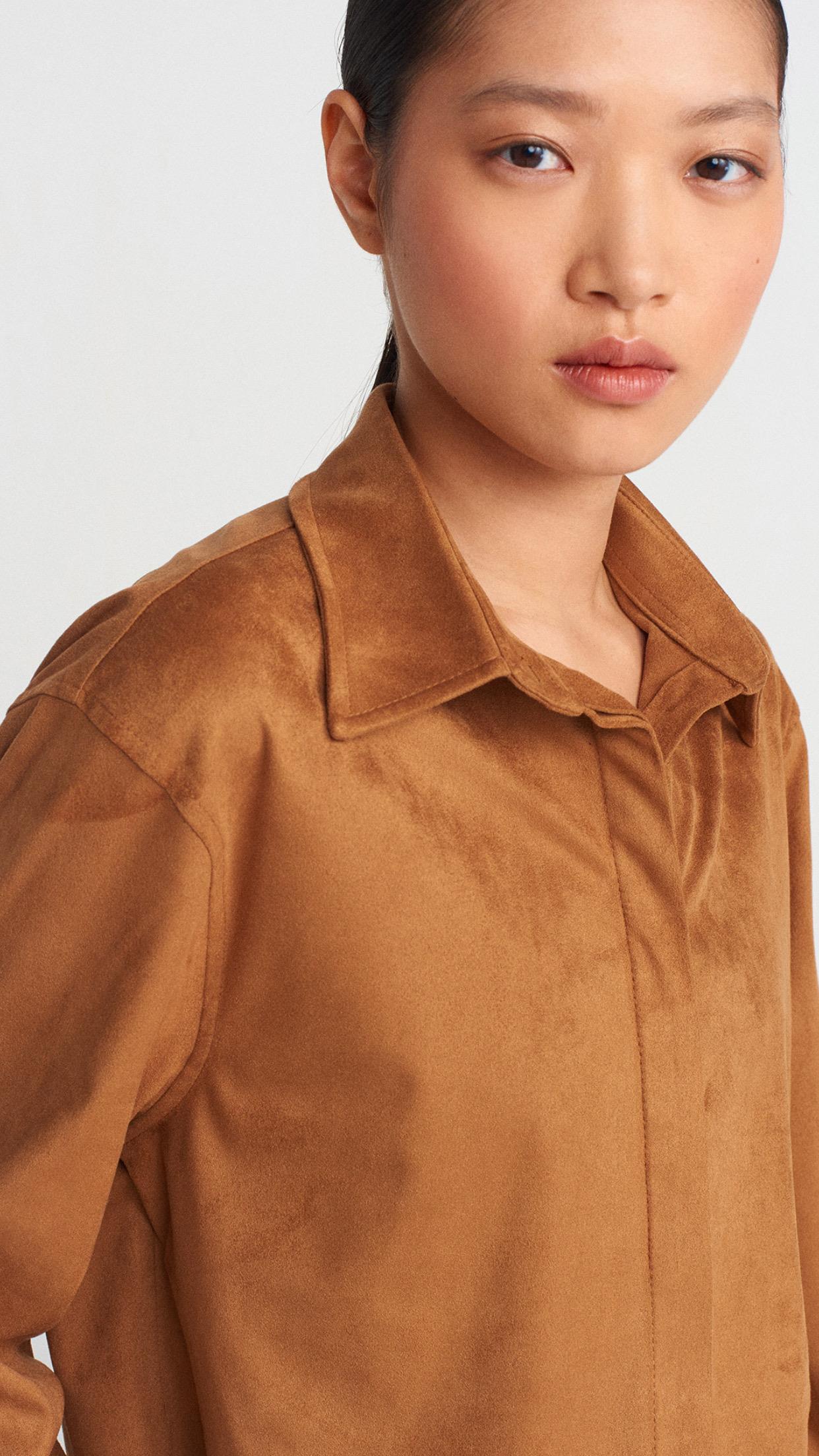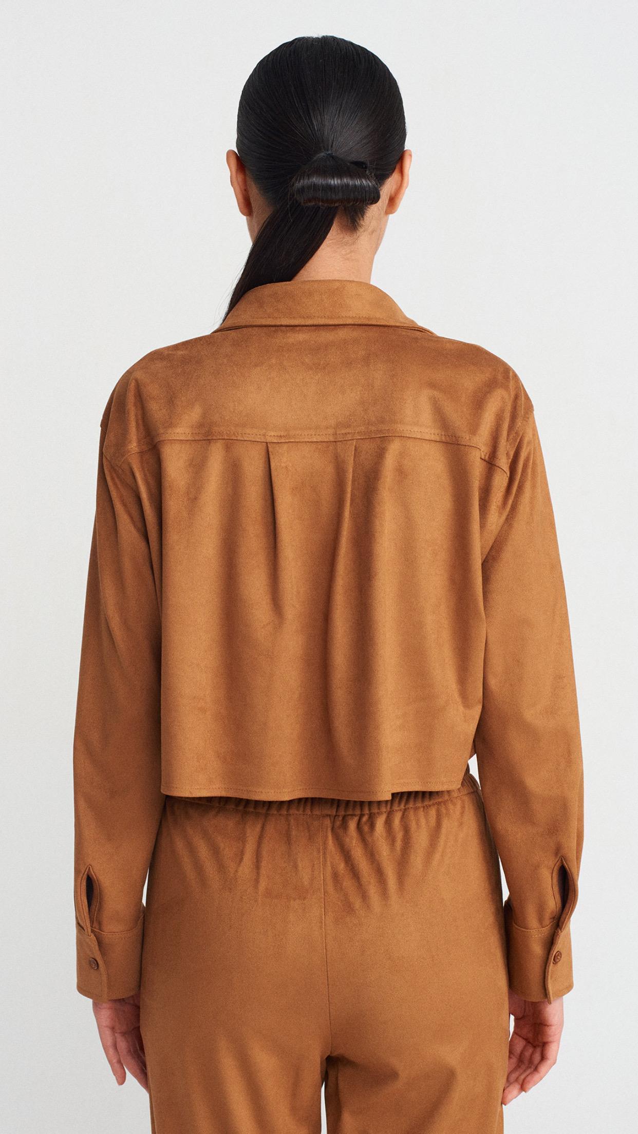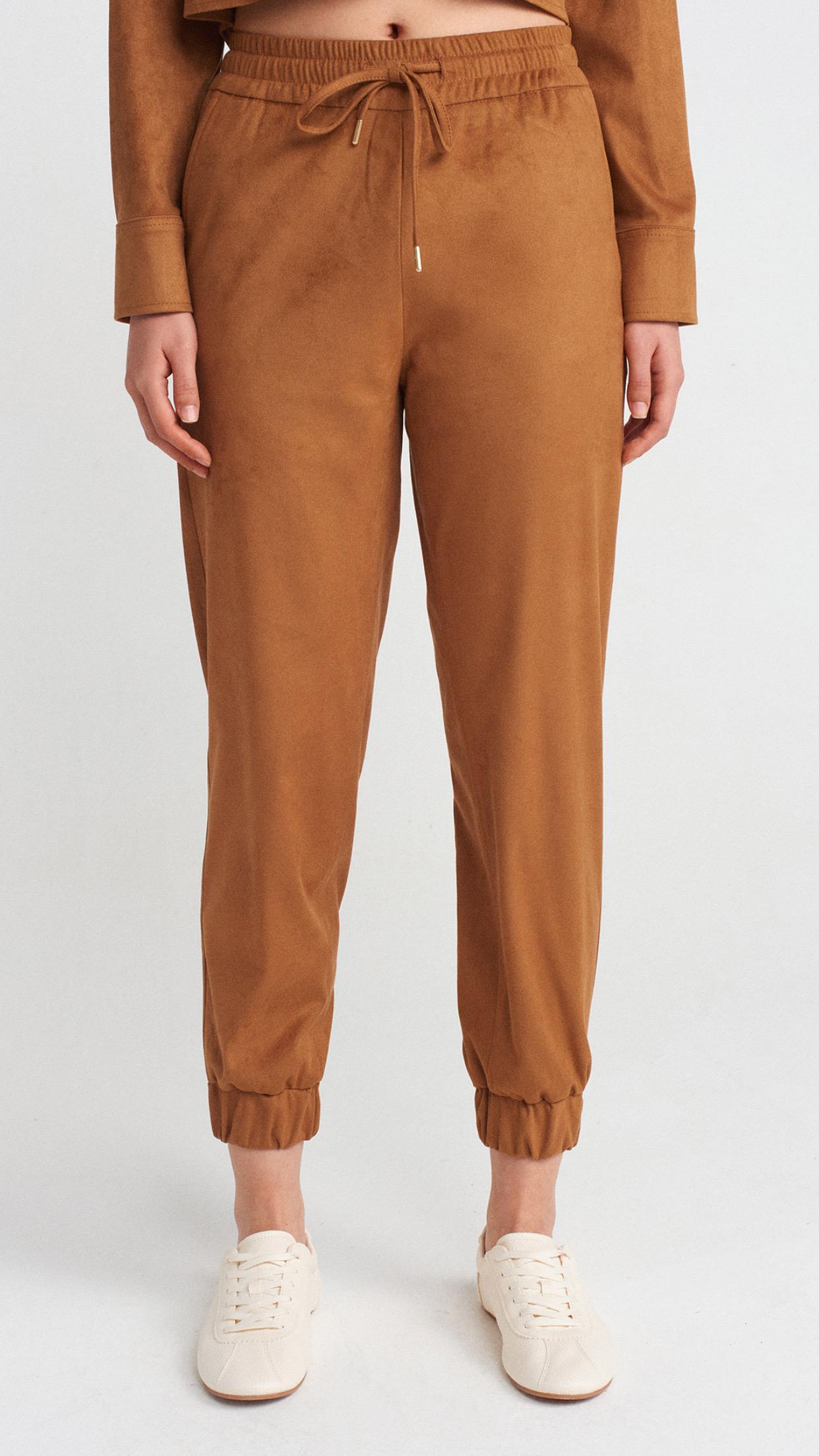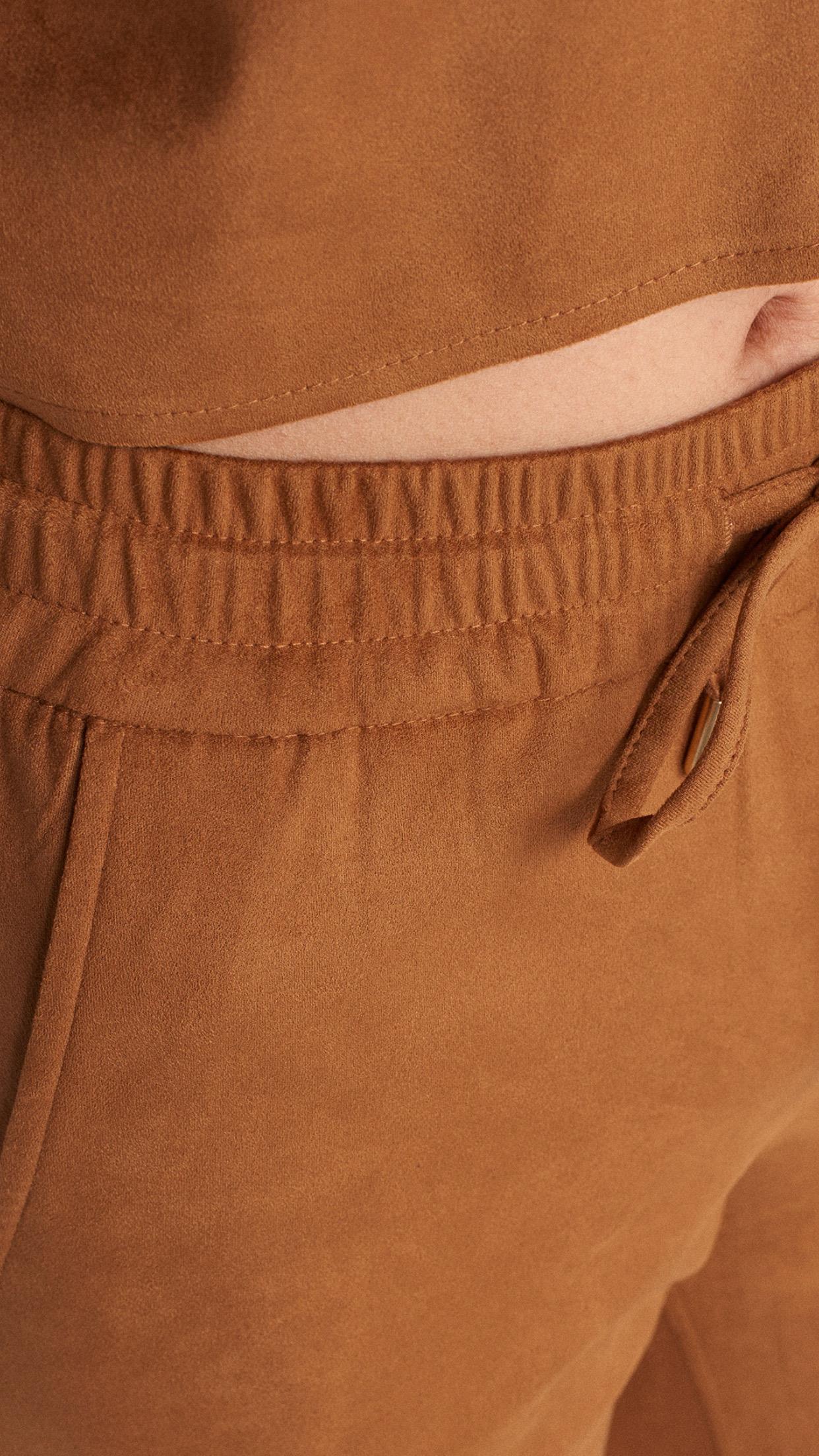 Dökümlü Crop Gömlek Manşetli Joggeer Süet Takım-Taba (50493)