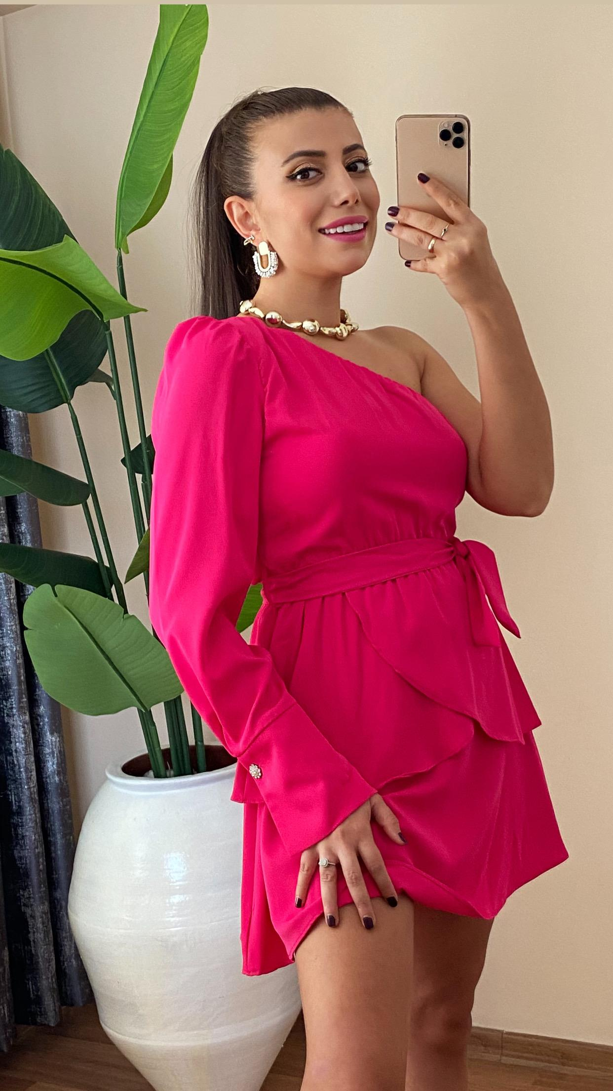 Fuşya Tek Kol Saten Elbise (Bvr-Q2)