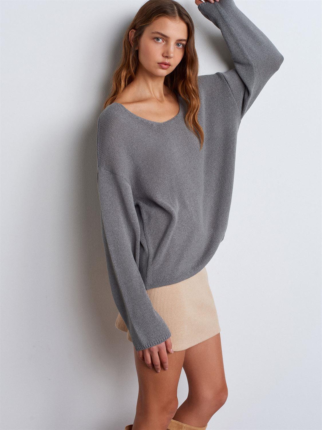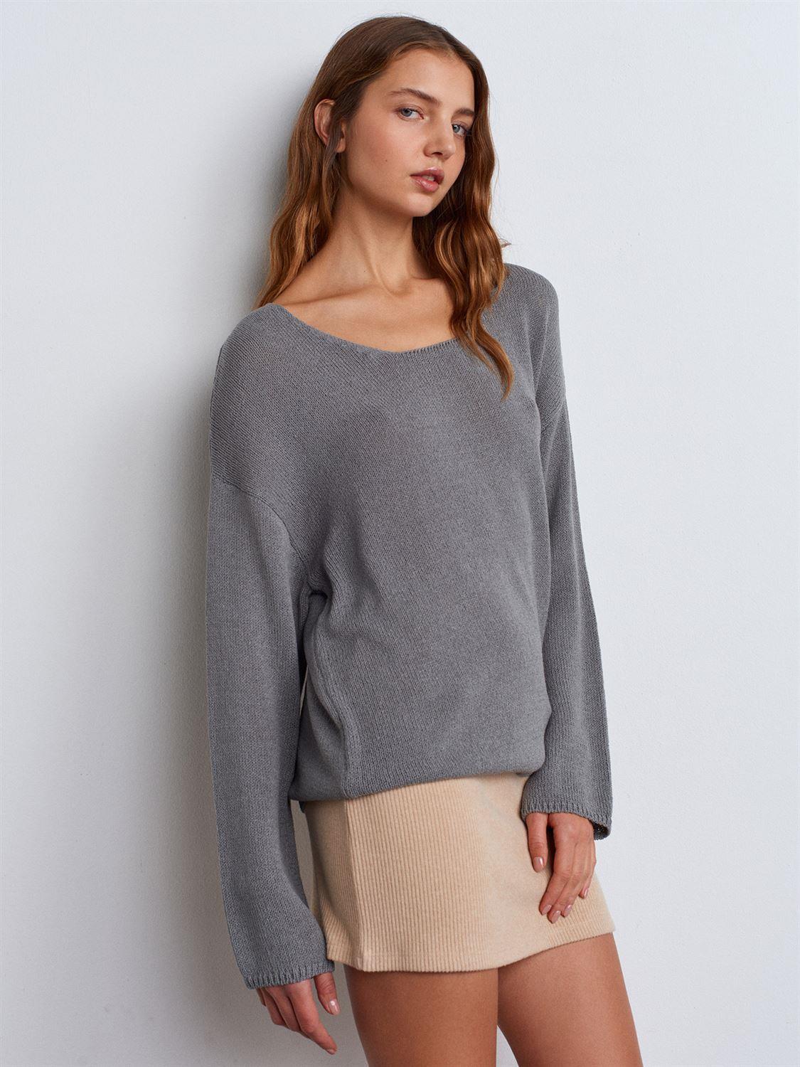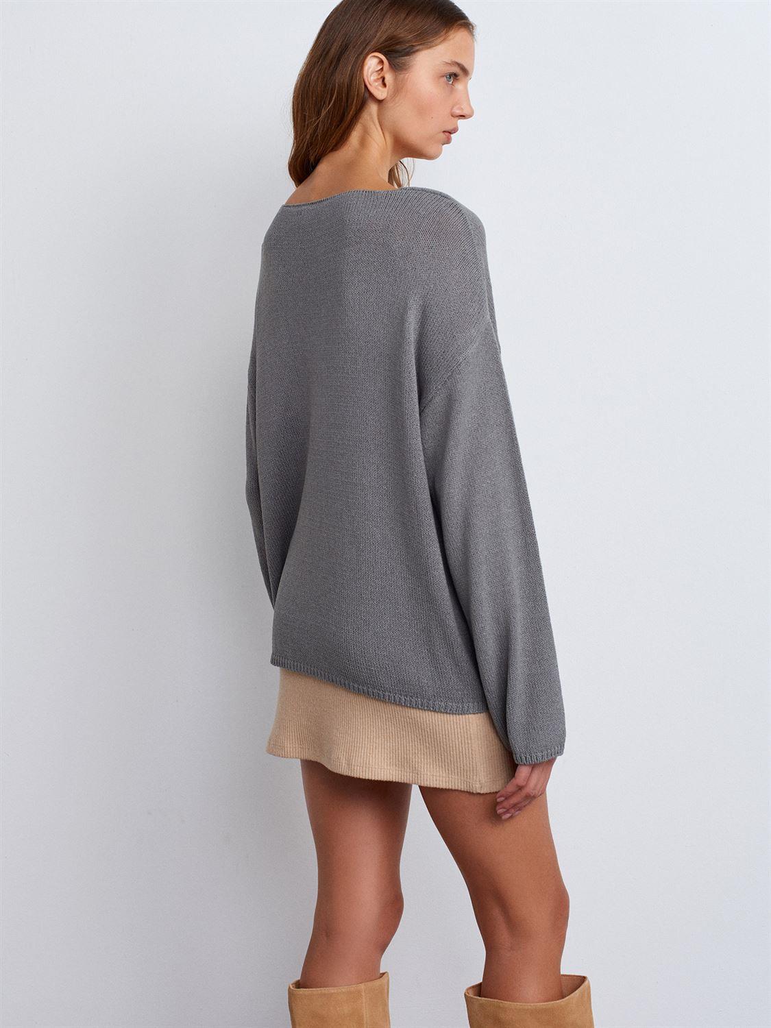 Gri Oval Yaka Yumuşak Dokulu Triko Kazak (10706G)