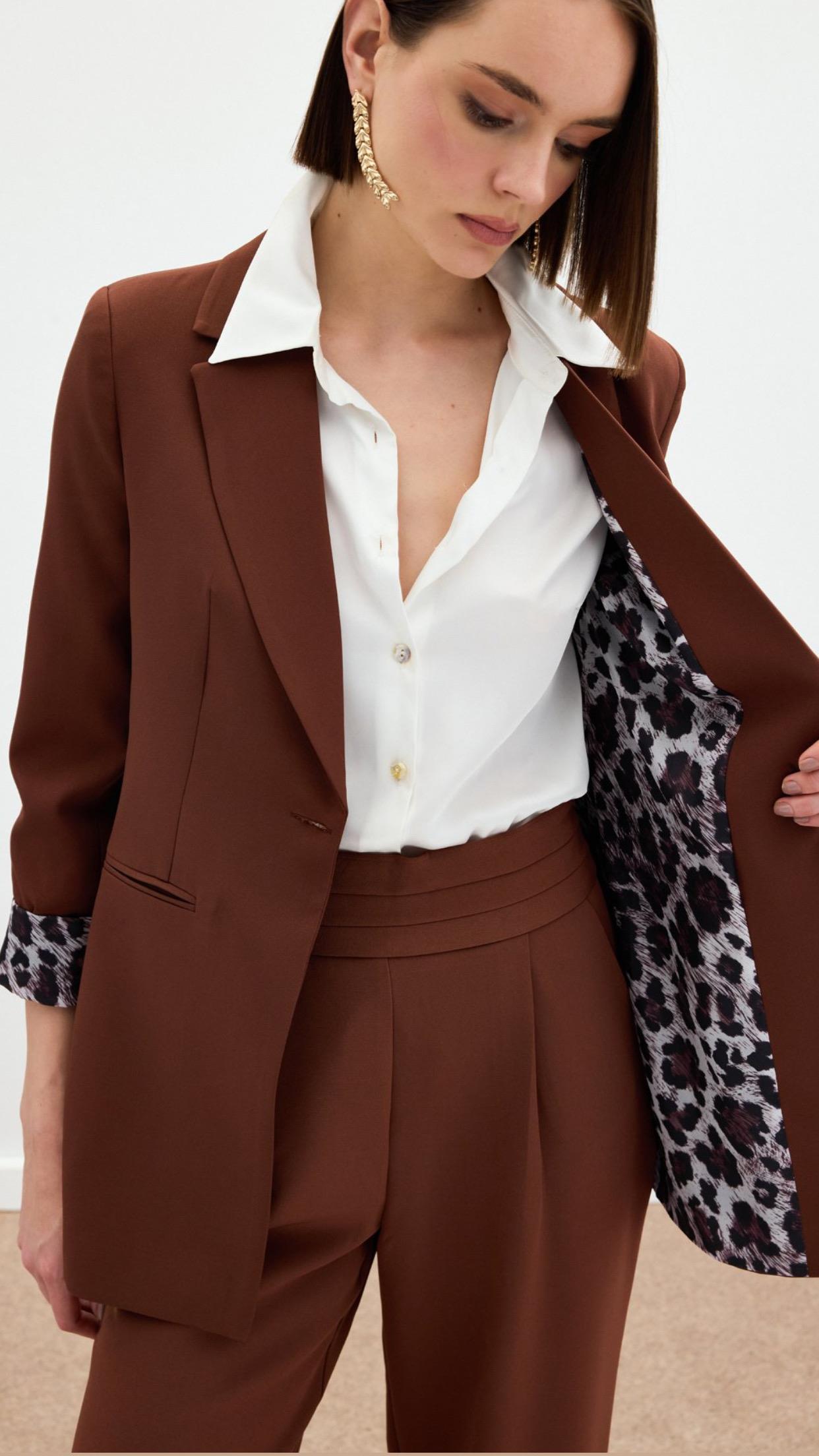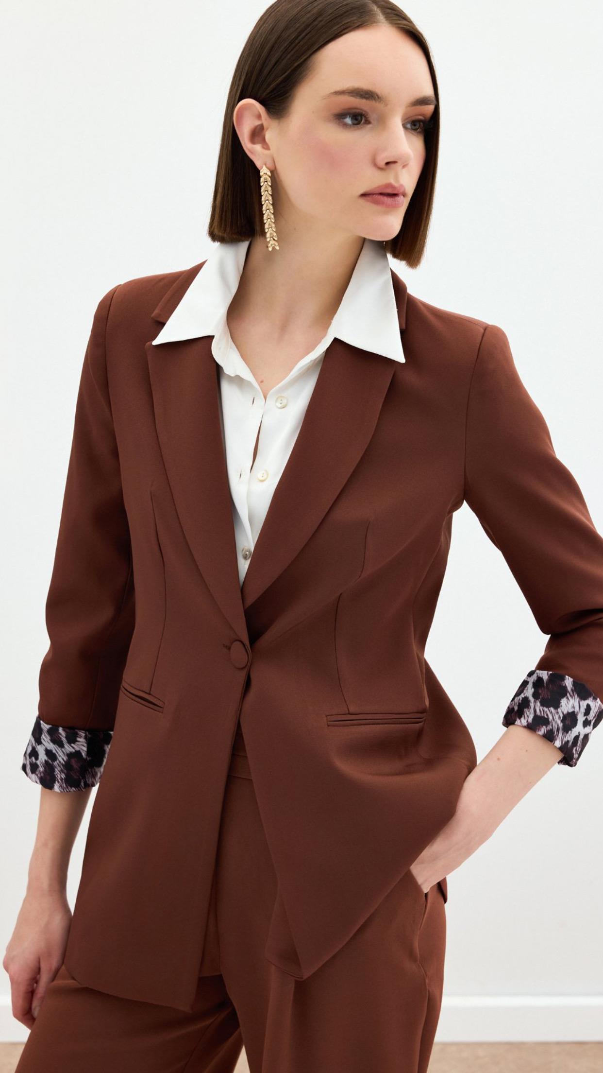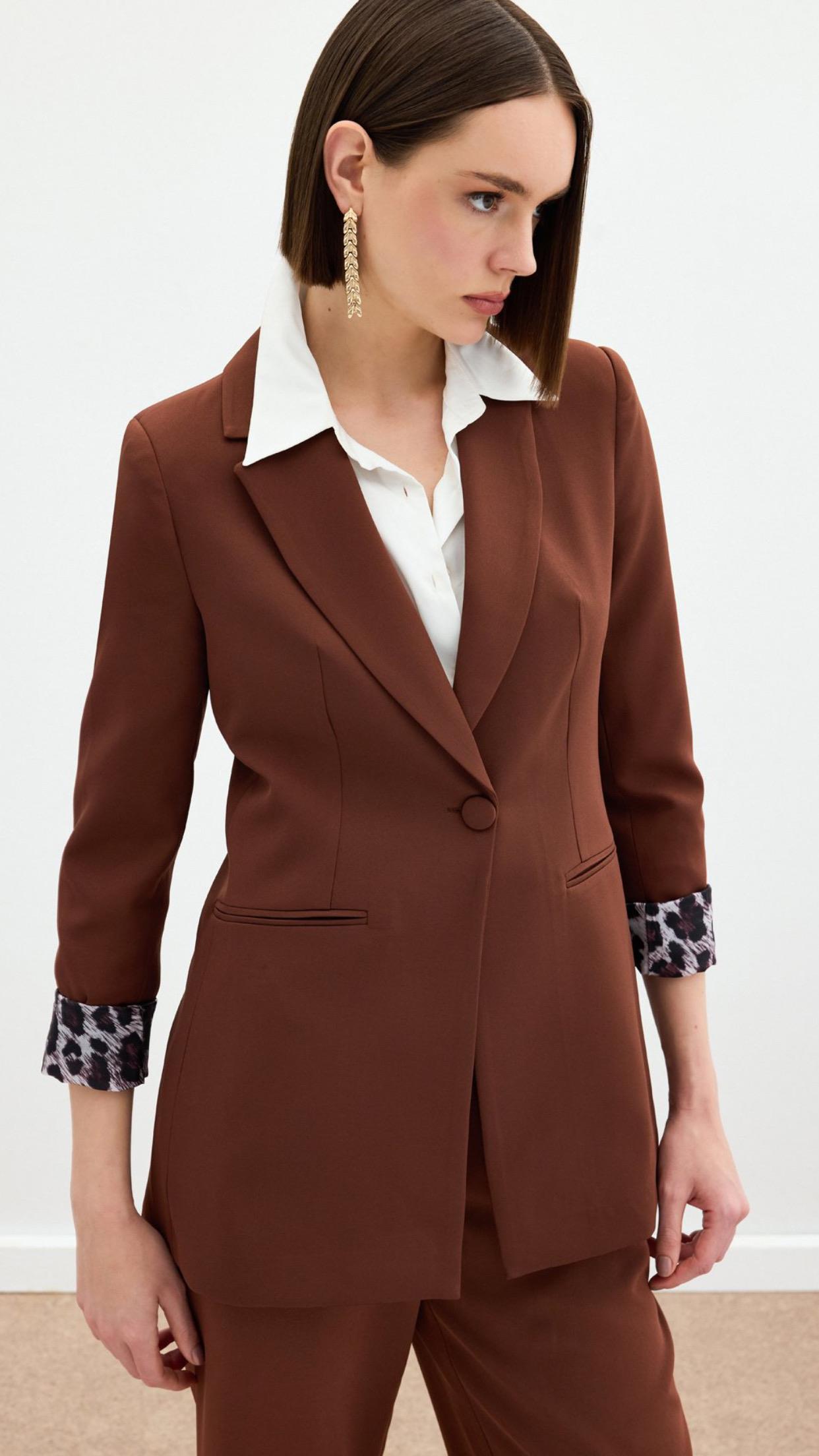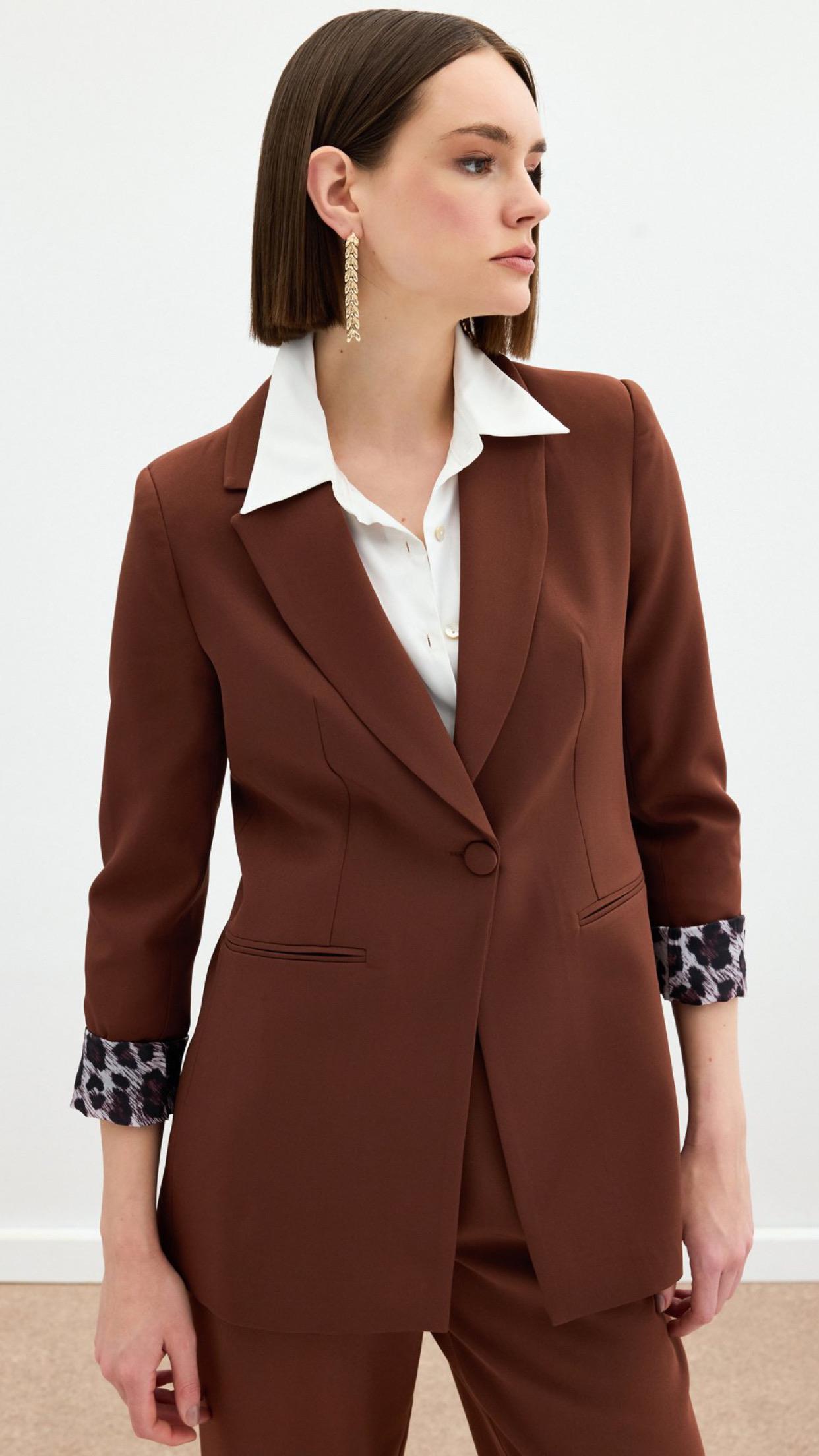 Mono Yaka Klasik Ceket - Kahve (6005)