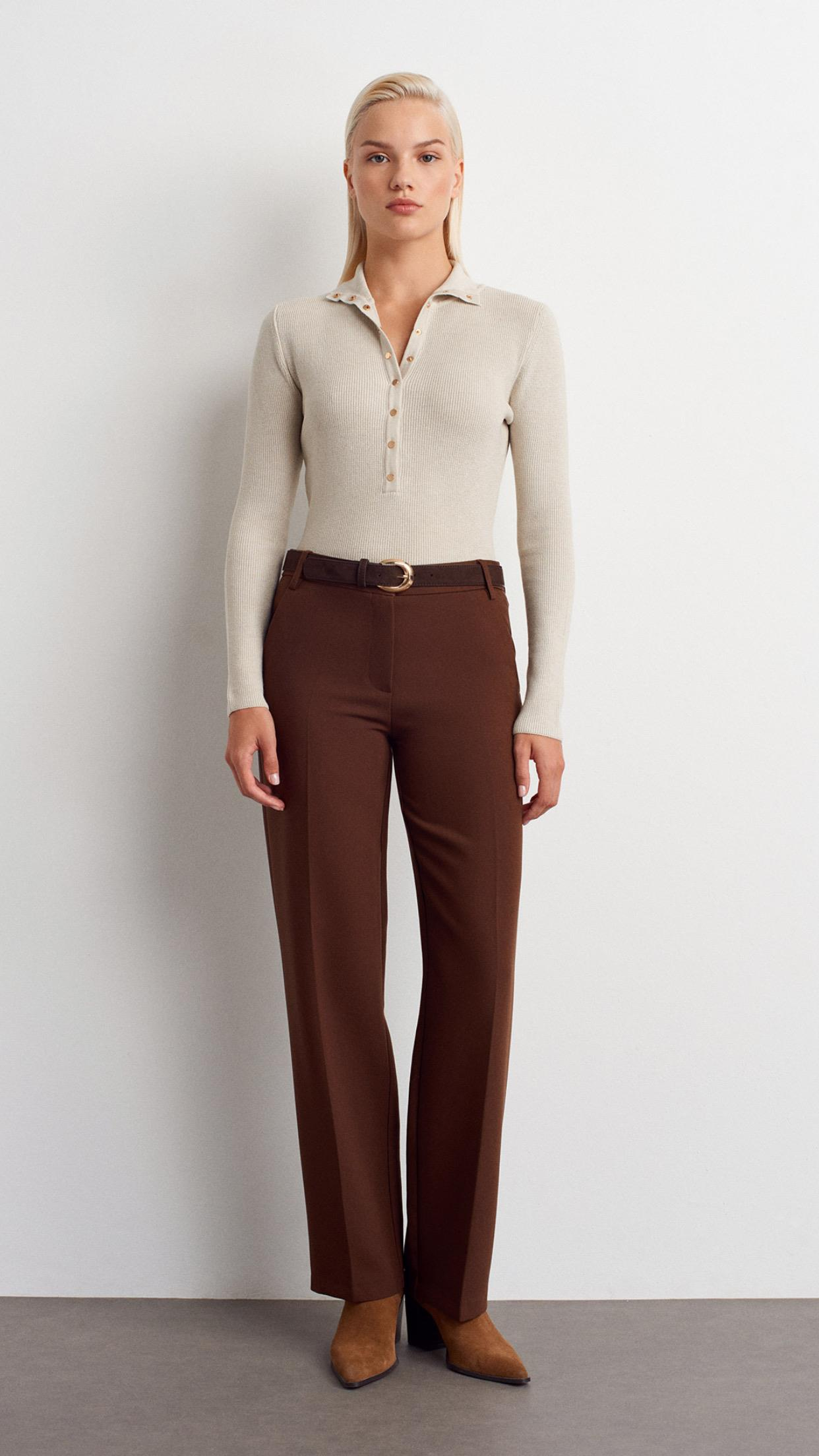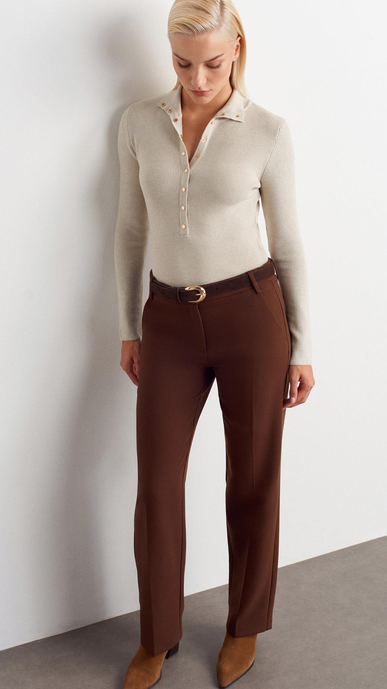 Orta Bel Kumaş Pantolon-Kahve (72172)