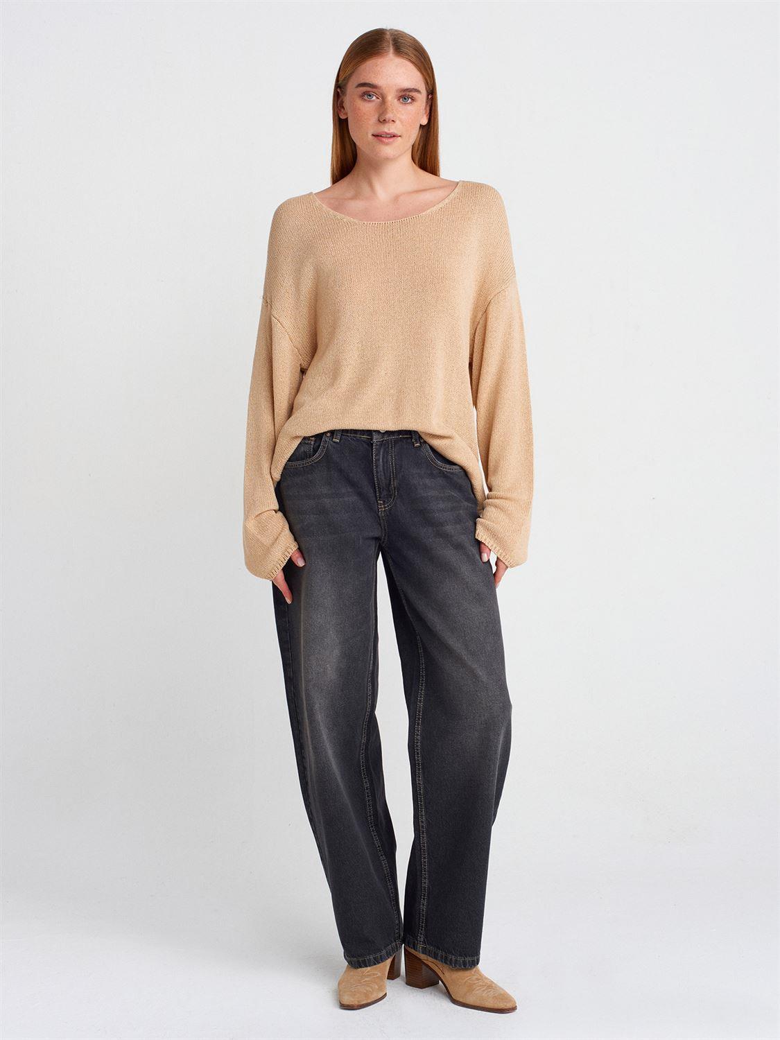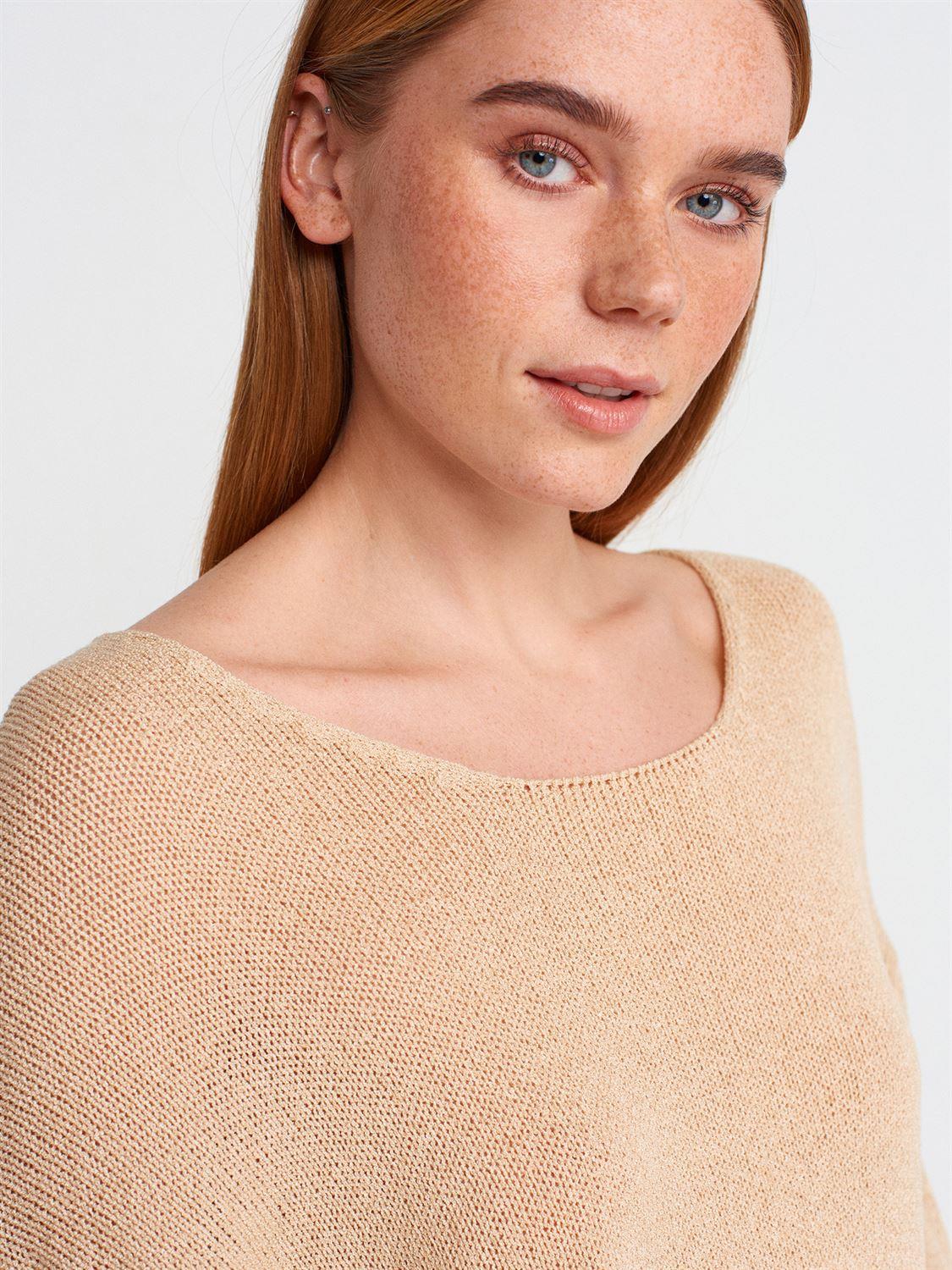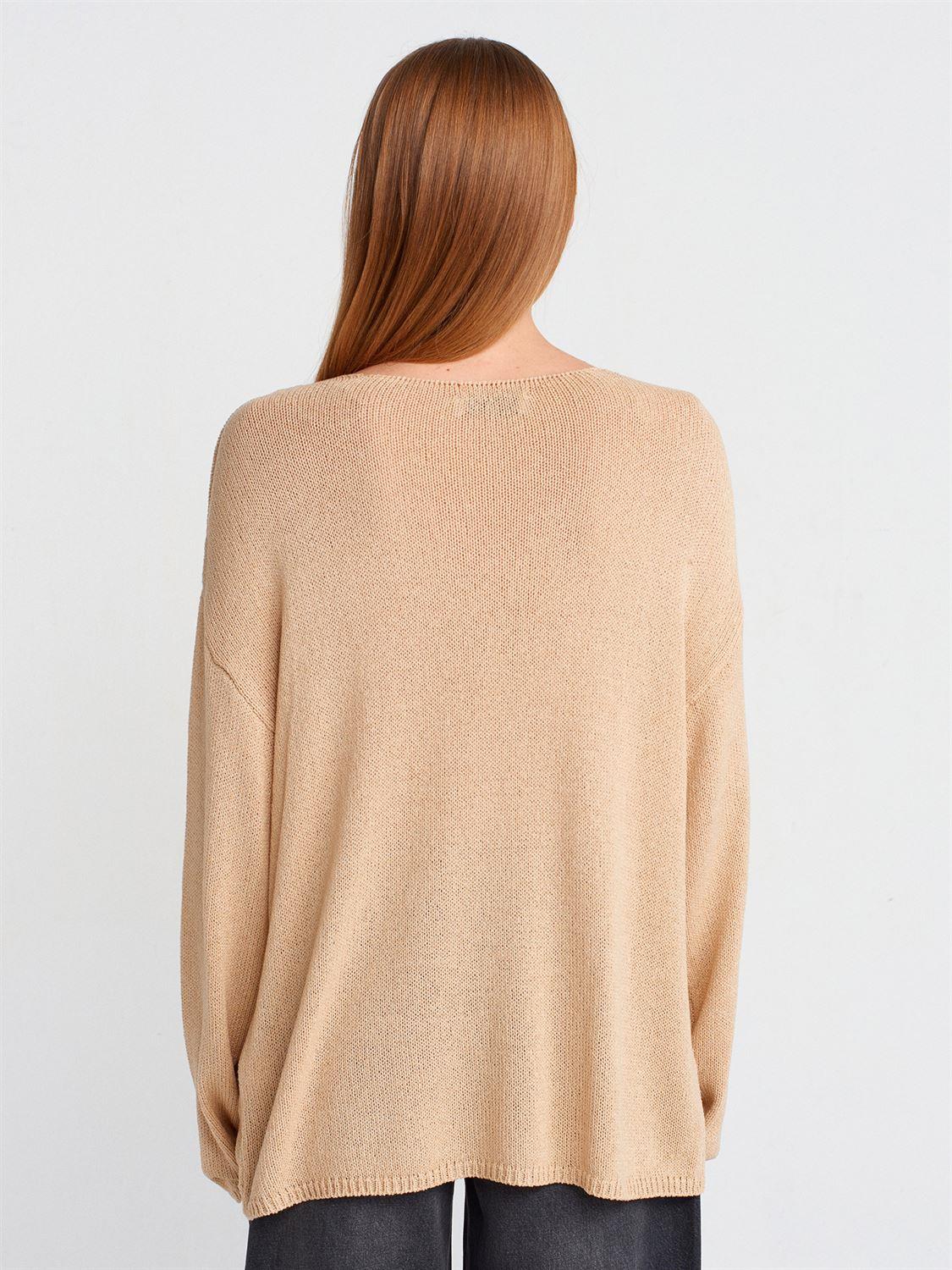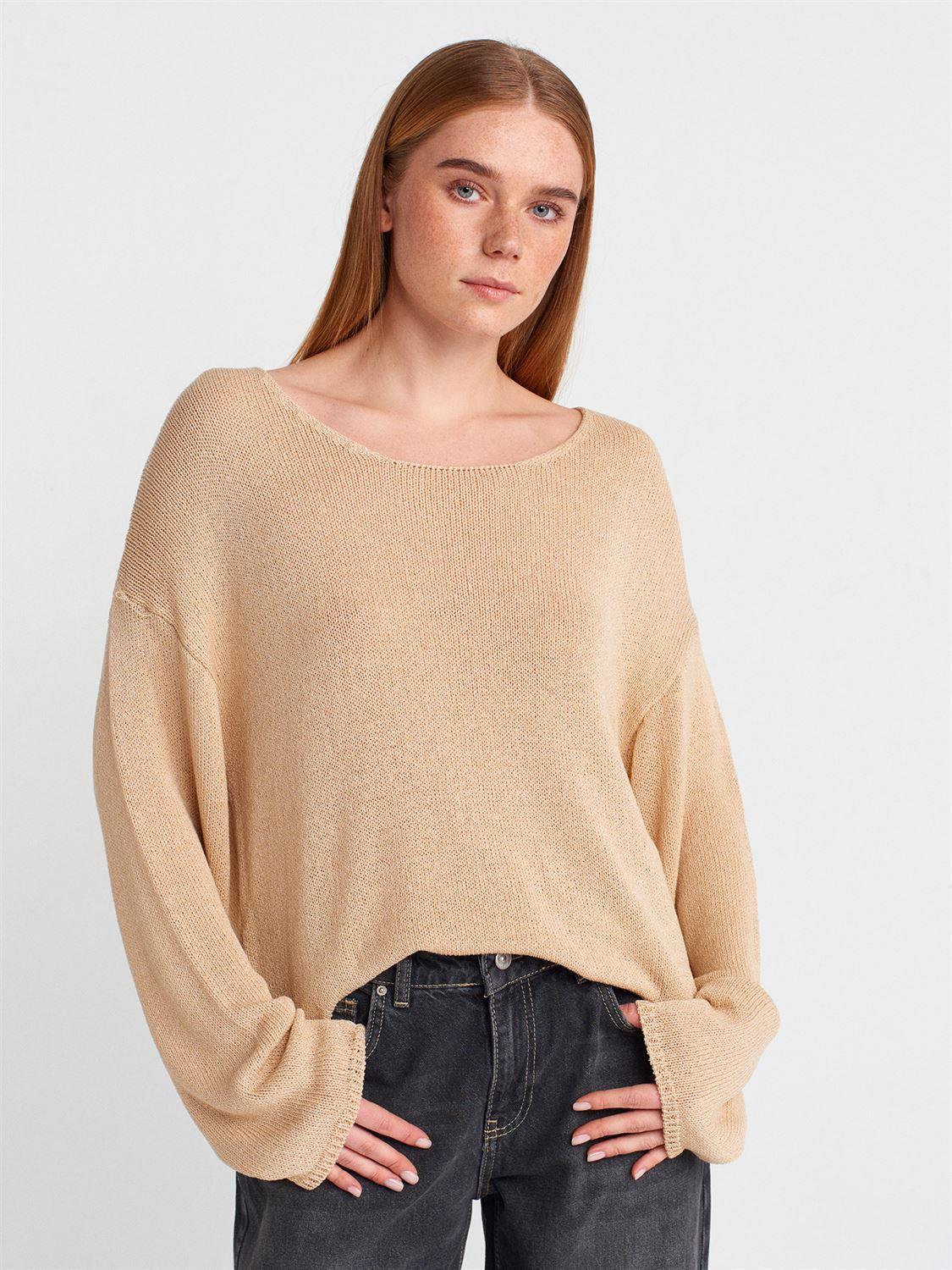 Oval Yaka Yumuşak Dokulu Triko Kazak-Bej (10706B)