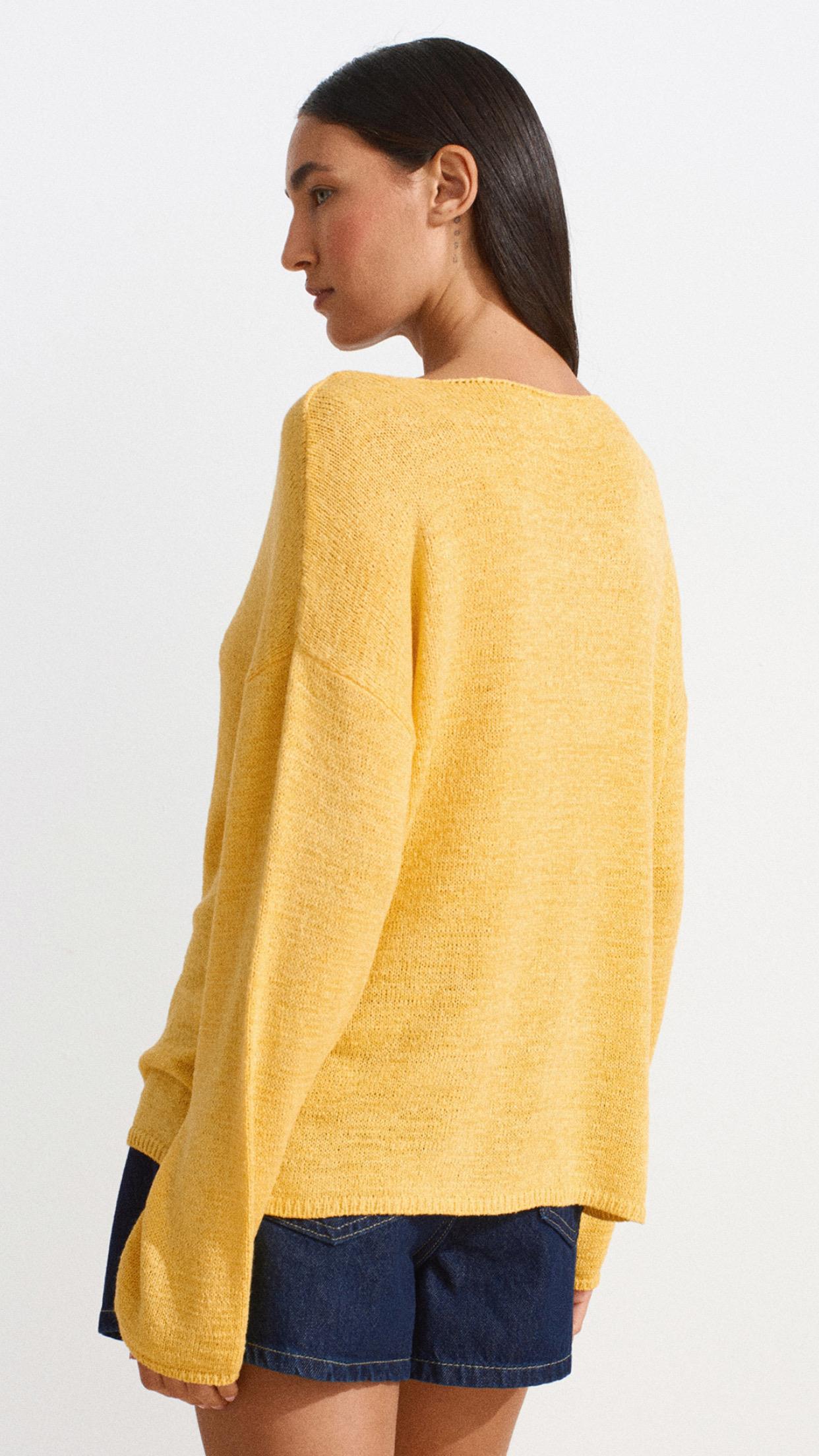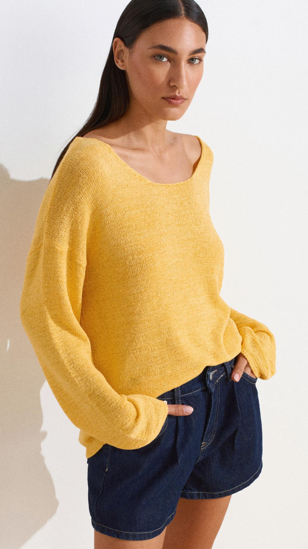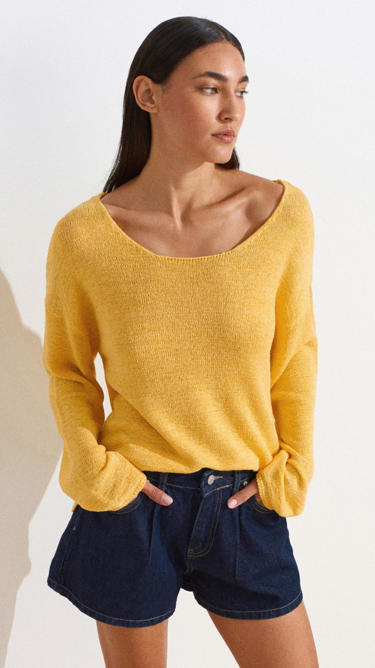 Oval Yaka Yumuşak Dokulu Triko Kazak-Sarı (10706)