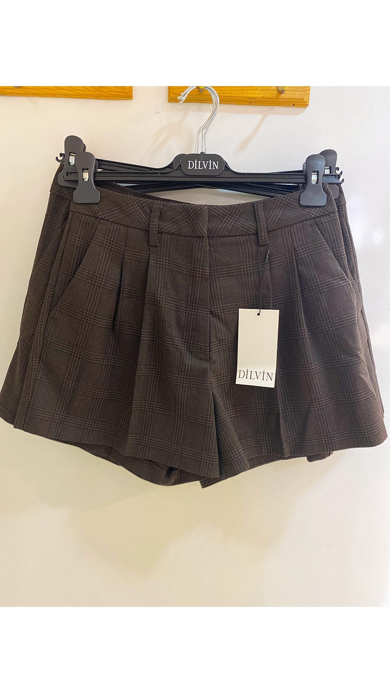 Pilili Yüksek Bel Şort - KAHVE (72190)