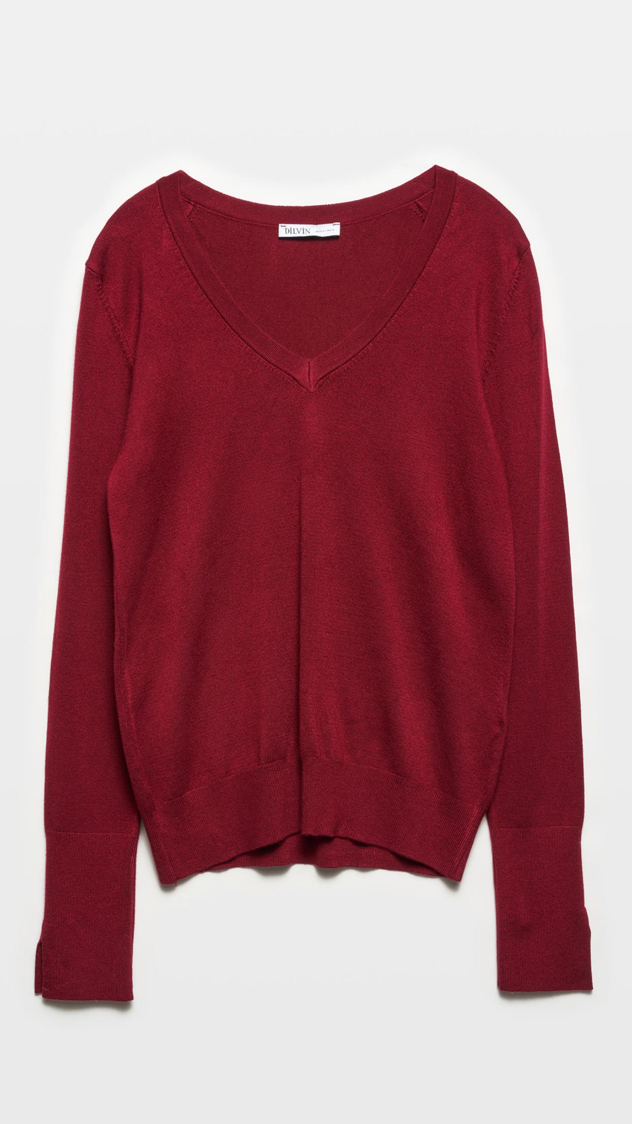 V Yaka Kolu Yırtmaçlı Kazak-Bordo (10427L)