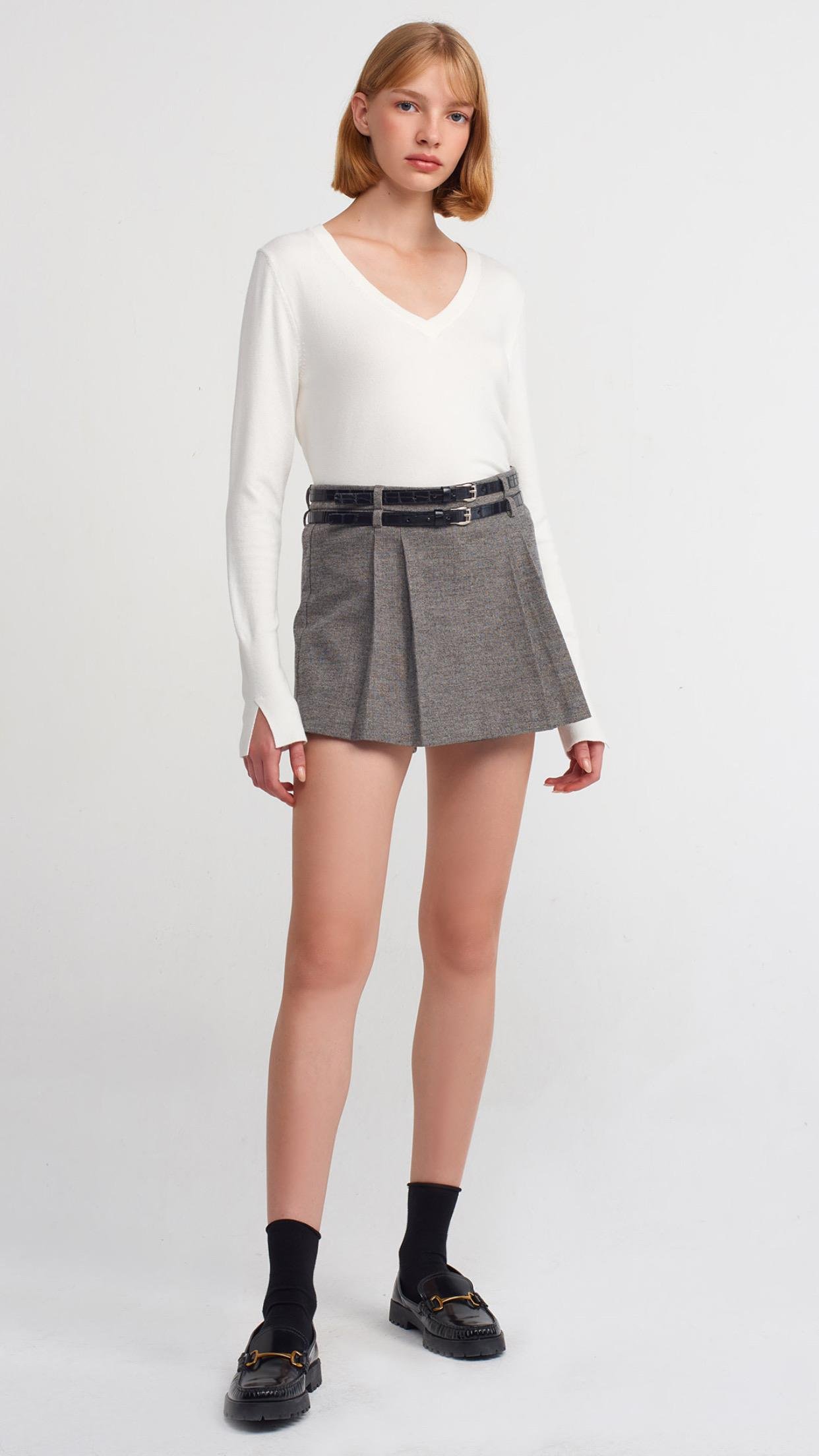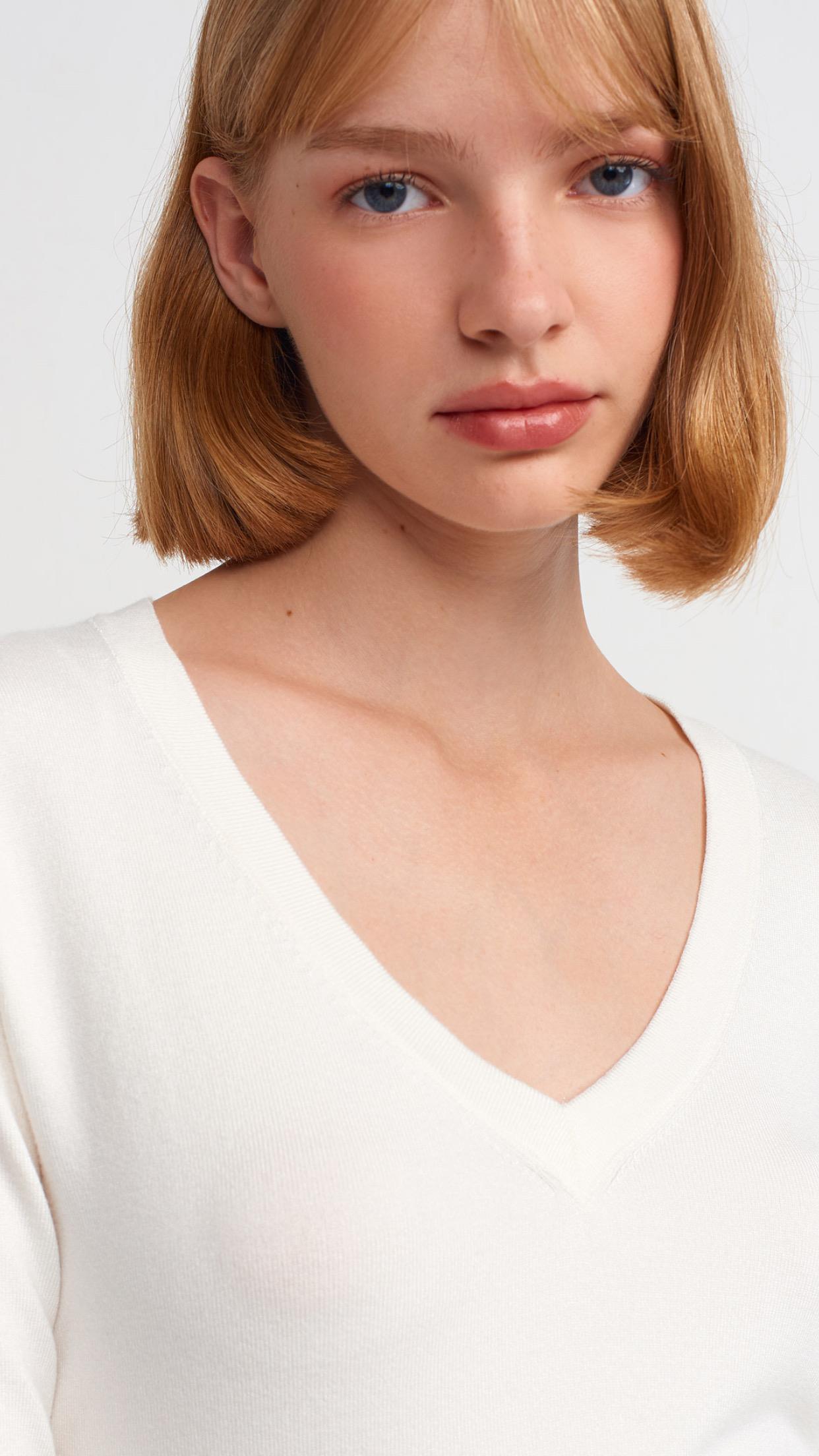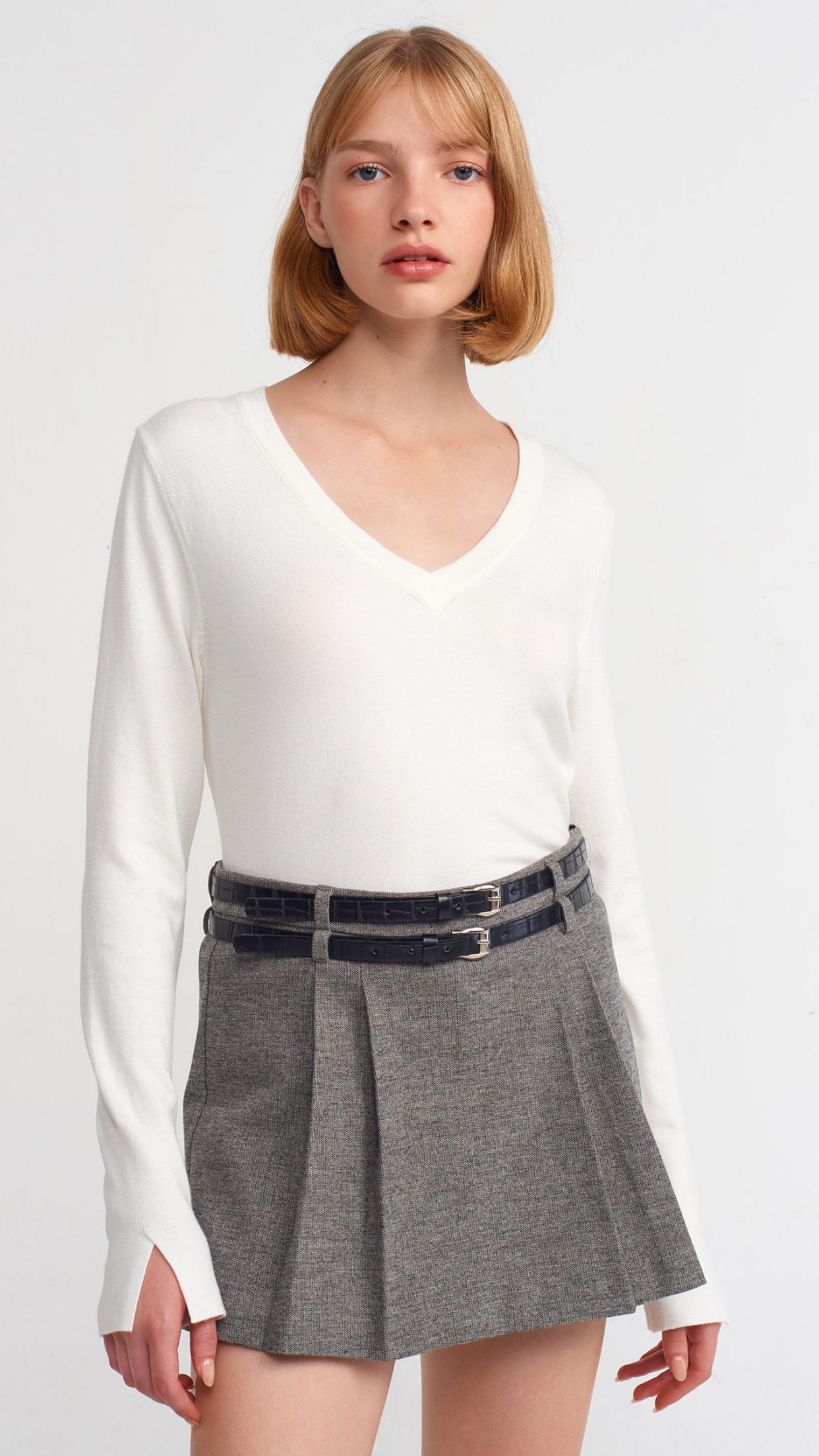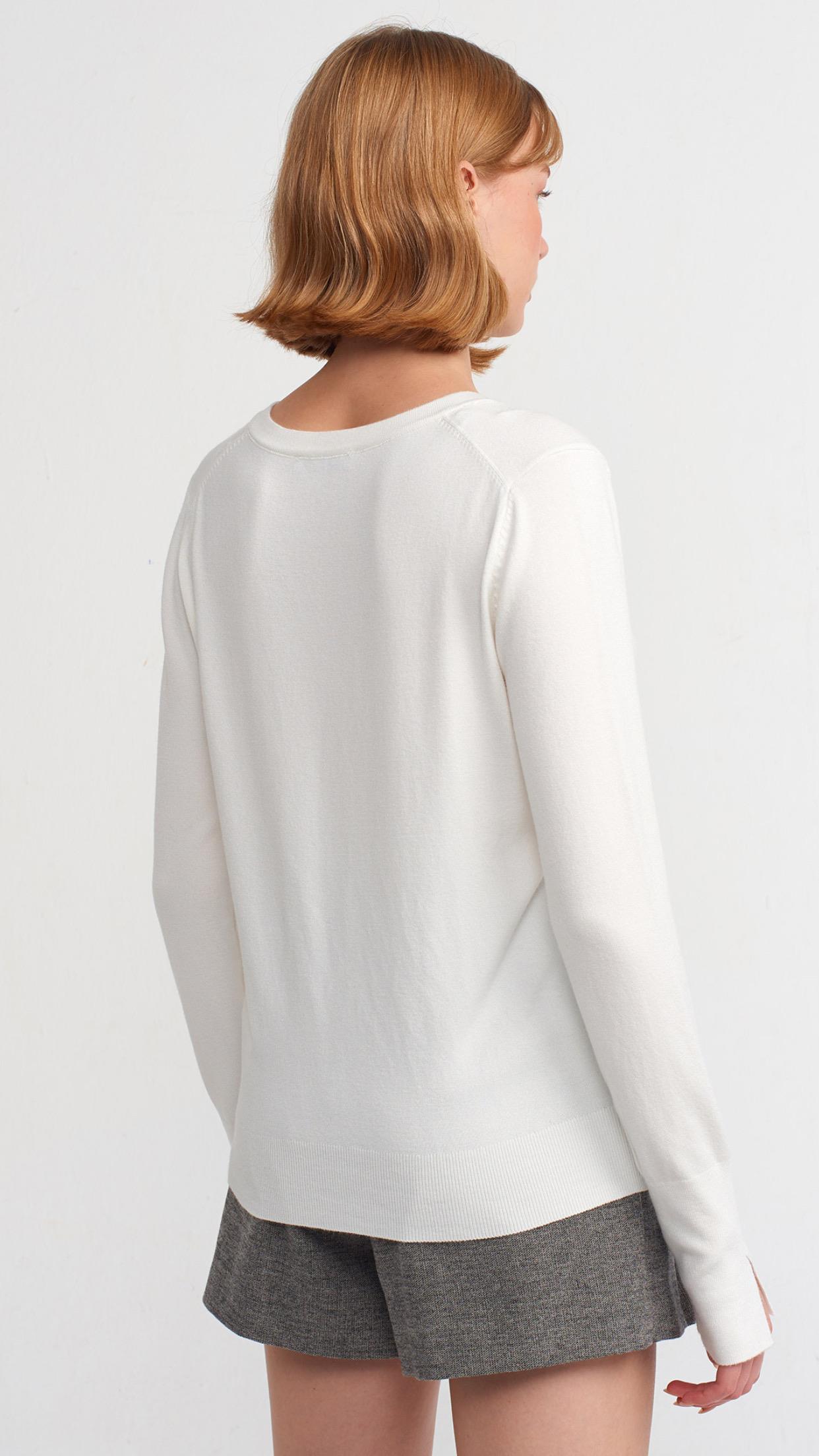 V Yaka Kolu Yırtmaçlı Kazak-Ekru (10427)