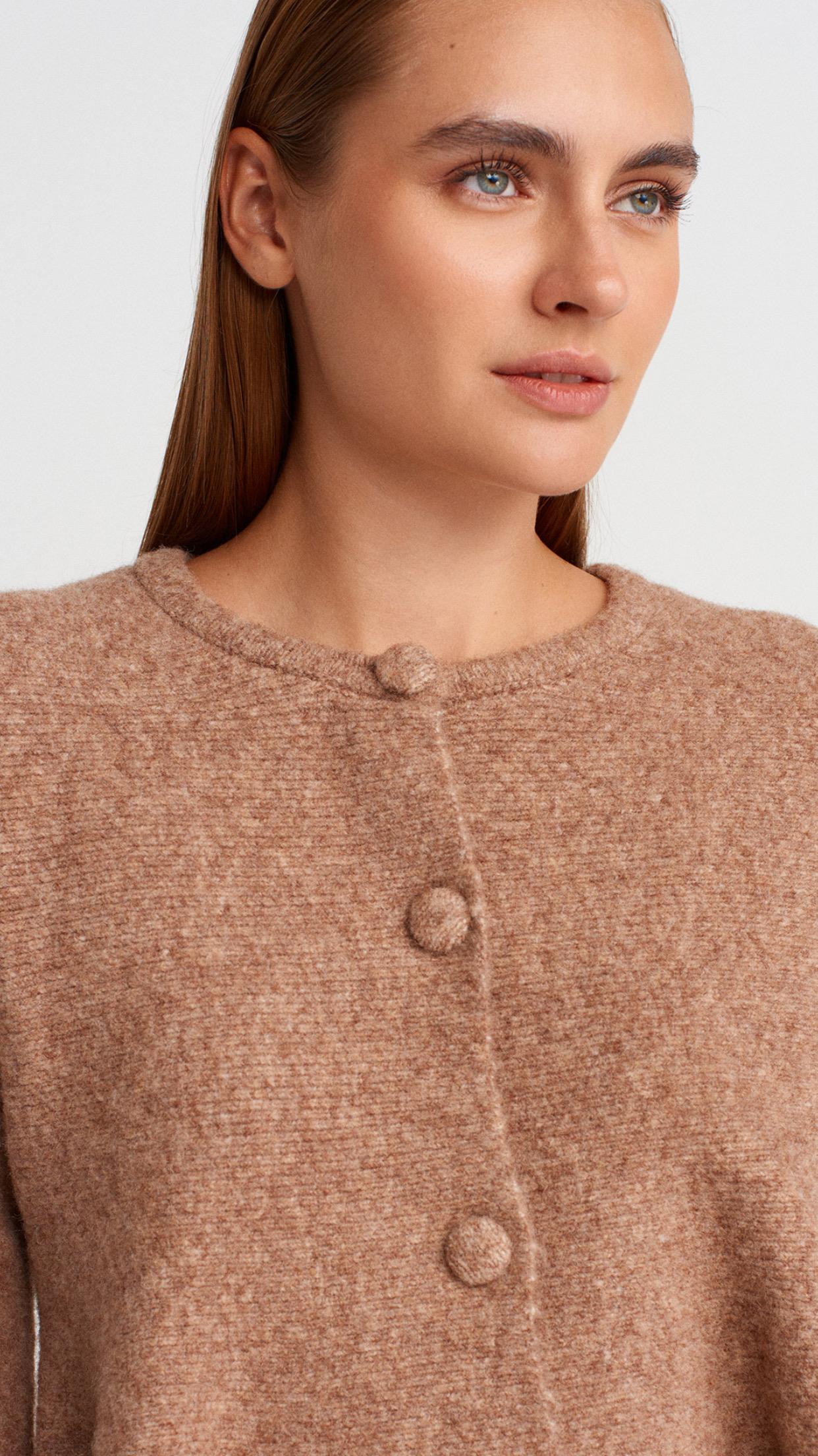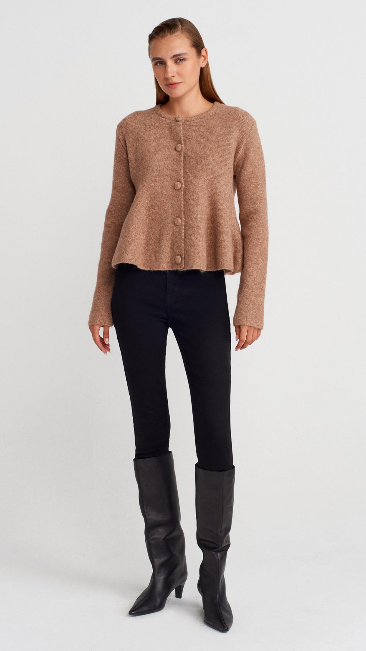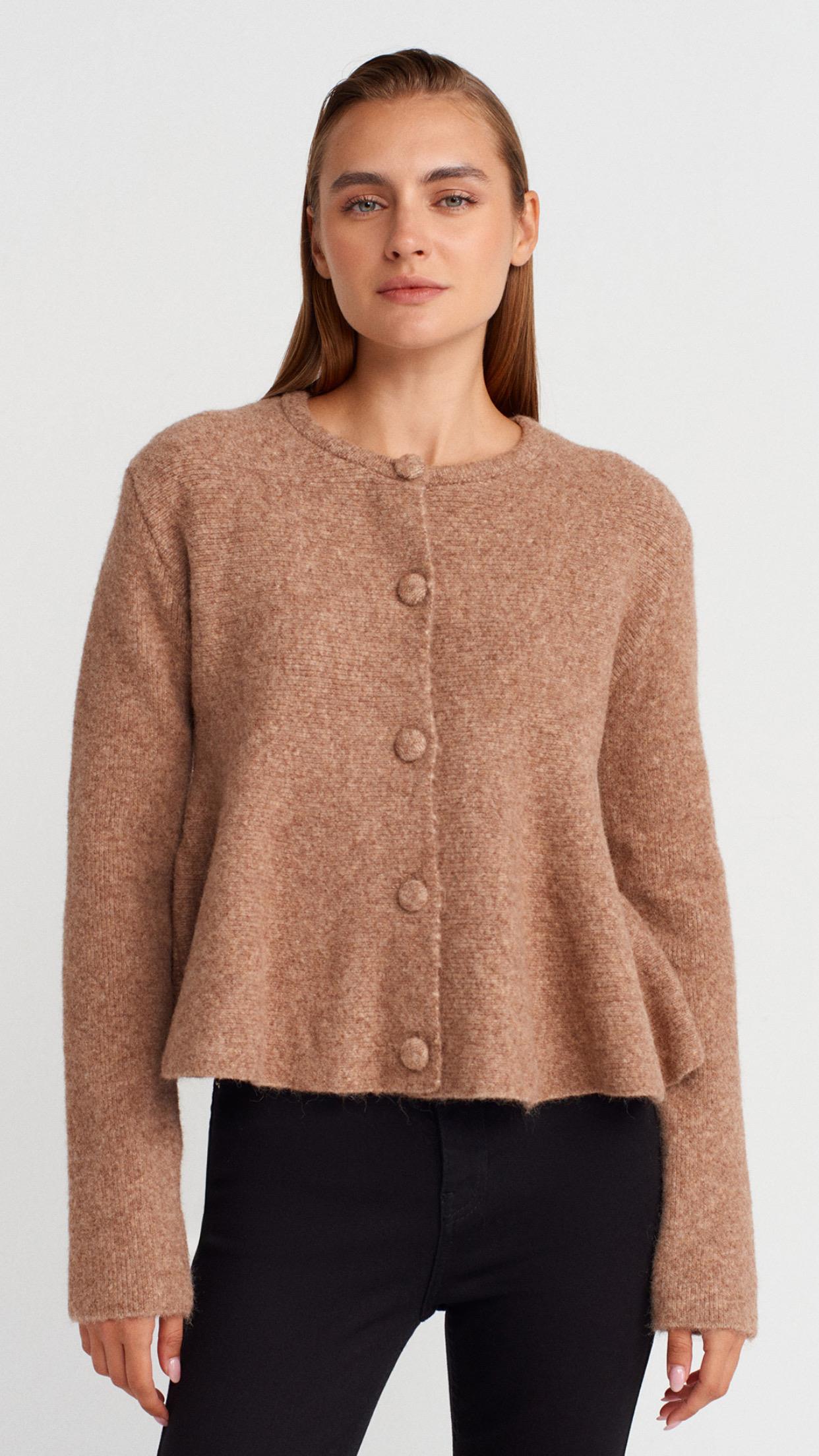 Yumuşak Dokulu Peplum Düğmeli Triko Hırka-BEJ (3132BEJ)