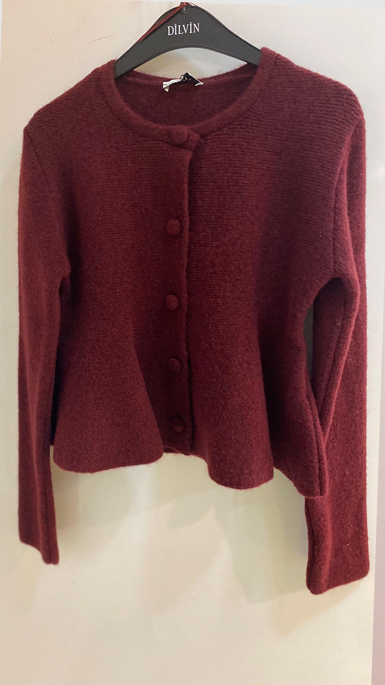 Yumuşak Dokulu Peplum Düğmeli Triko Hırka-BORDO (60985BORDO)