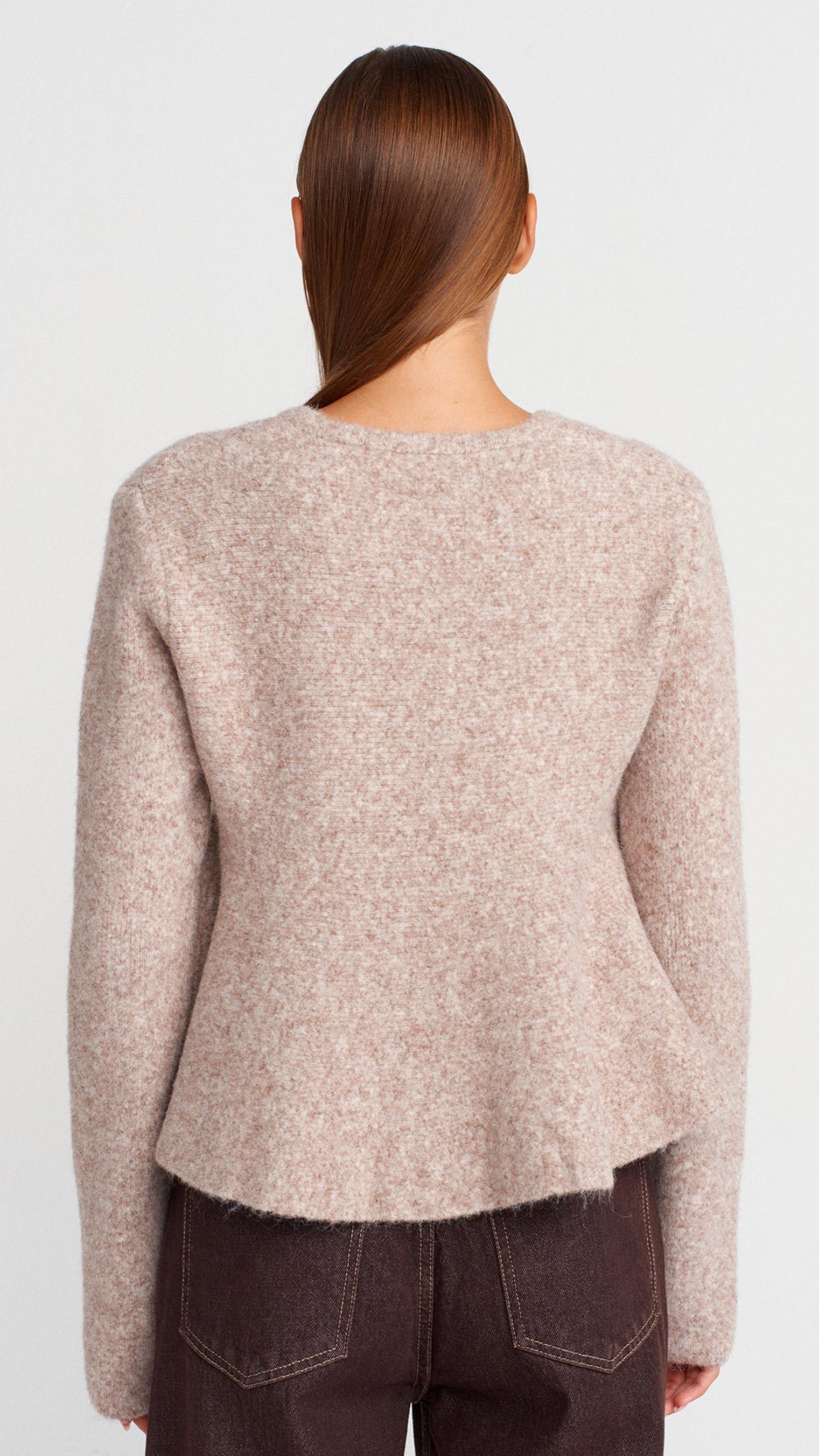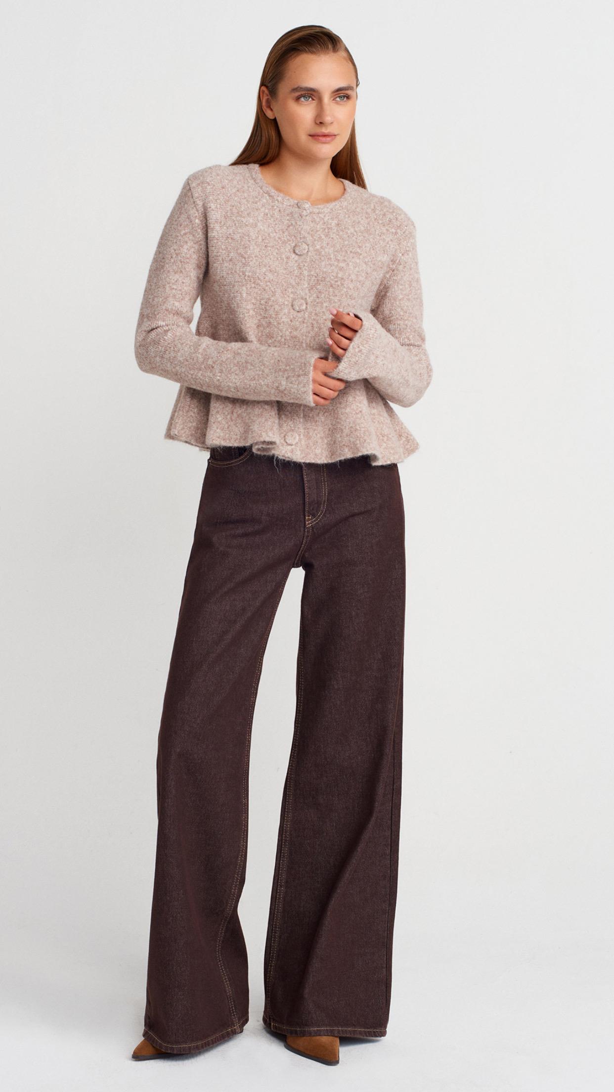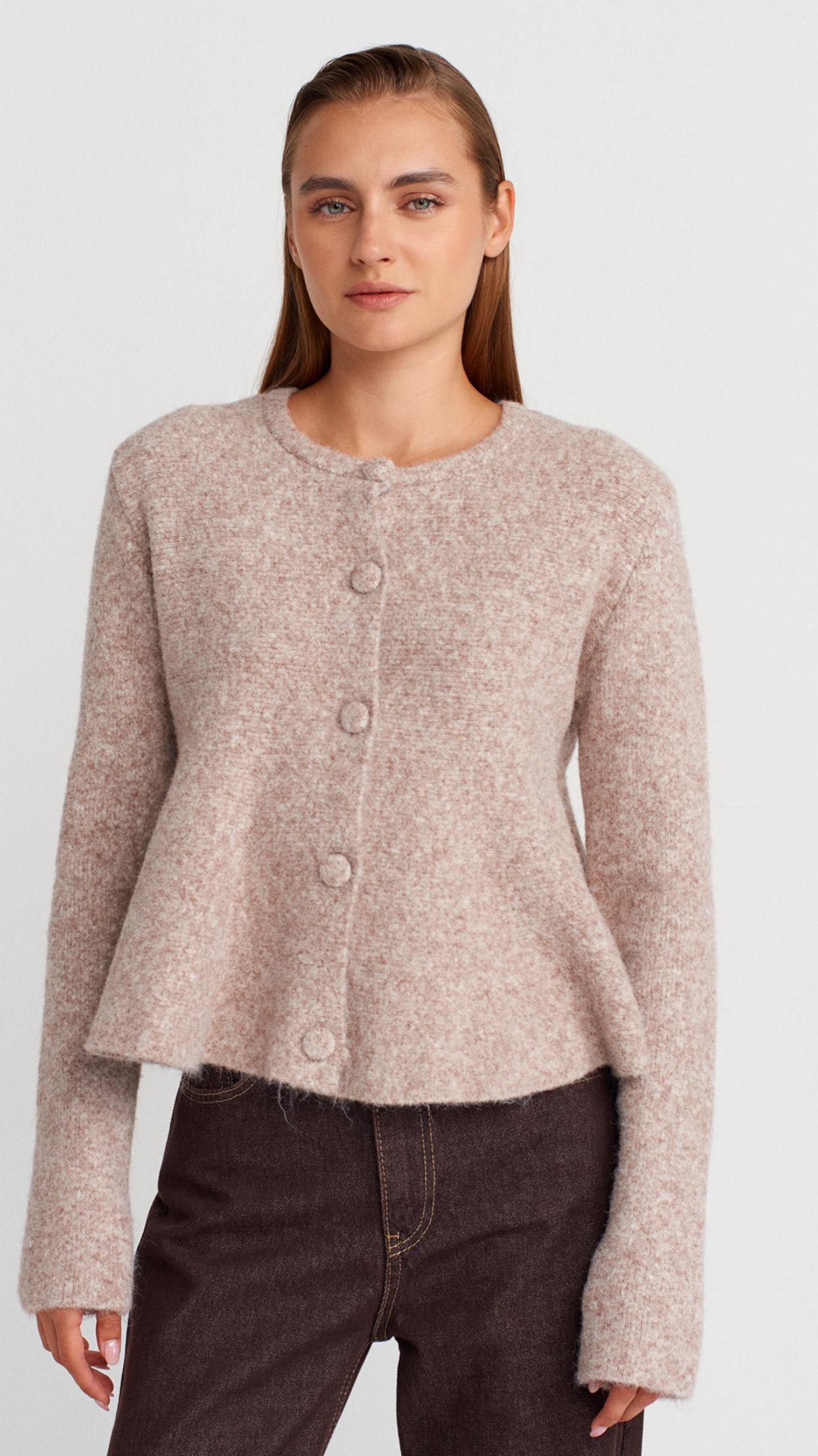 Yumuşak Dokulu Peplum Düğmeli Triko Hırka-Vizon M. (60985)